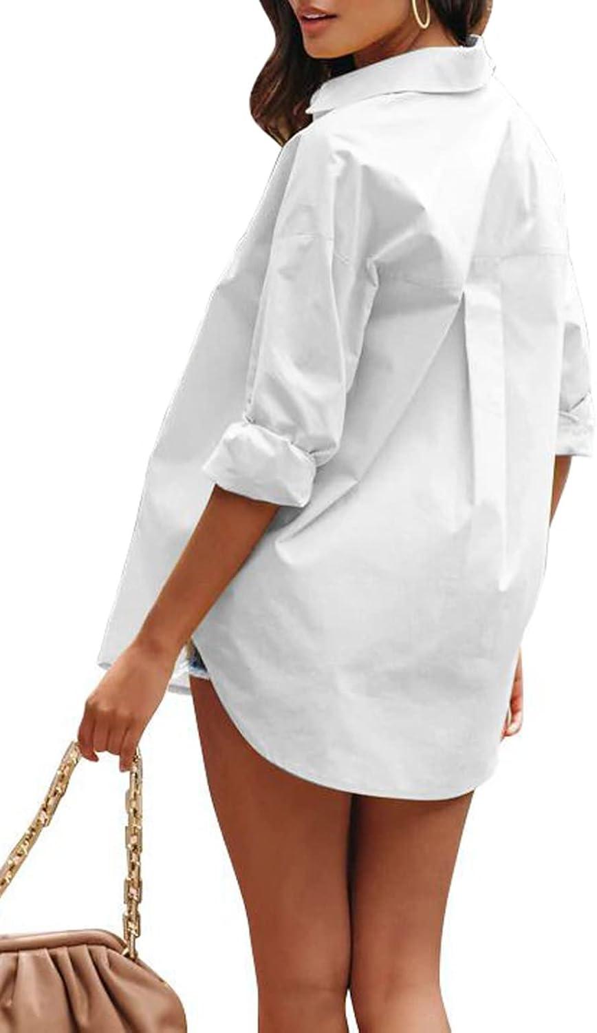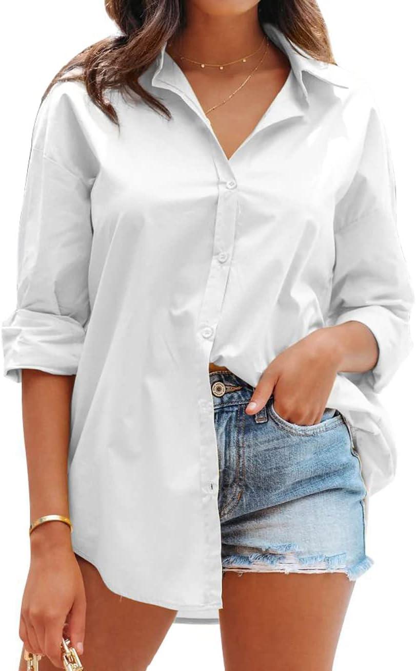 CHARTOU Women’s Boyfriend Style Button Down Long Sleeve Candy Color Blouse Shirt Tops(White)
