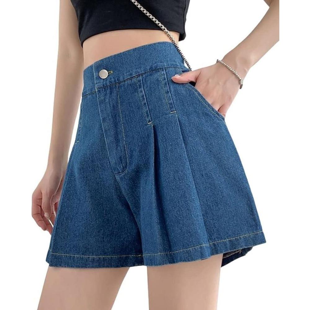 CHARTOU Women’s Casual Back-Elastic Ruffled Skirt Denim Jean Flowy Mini Shorts Skort(Dark Blue)