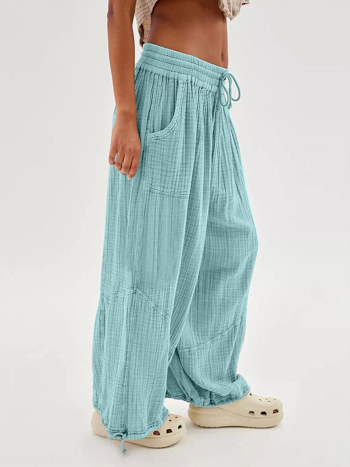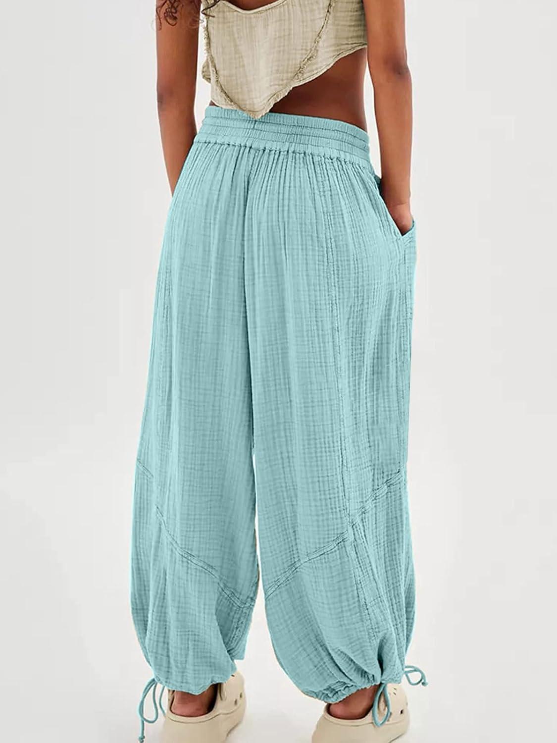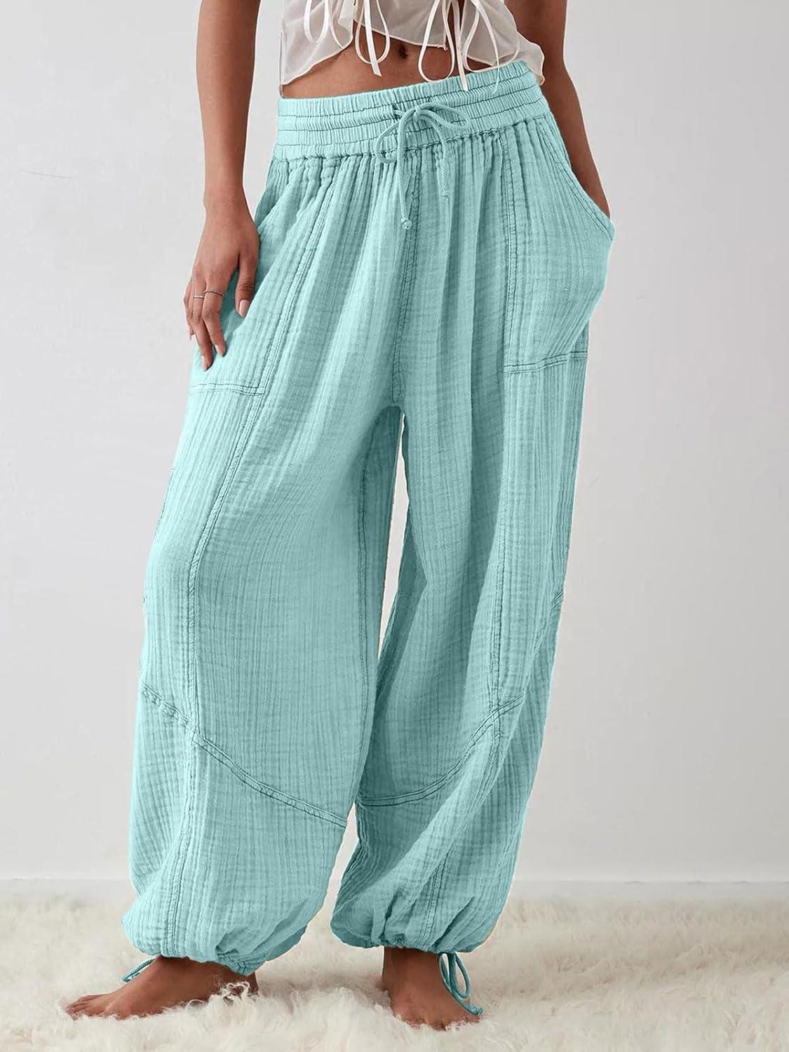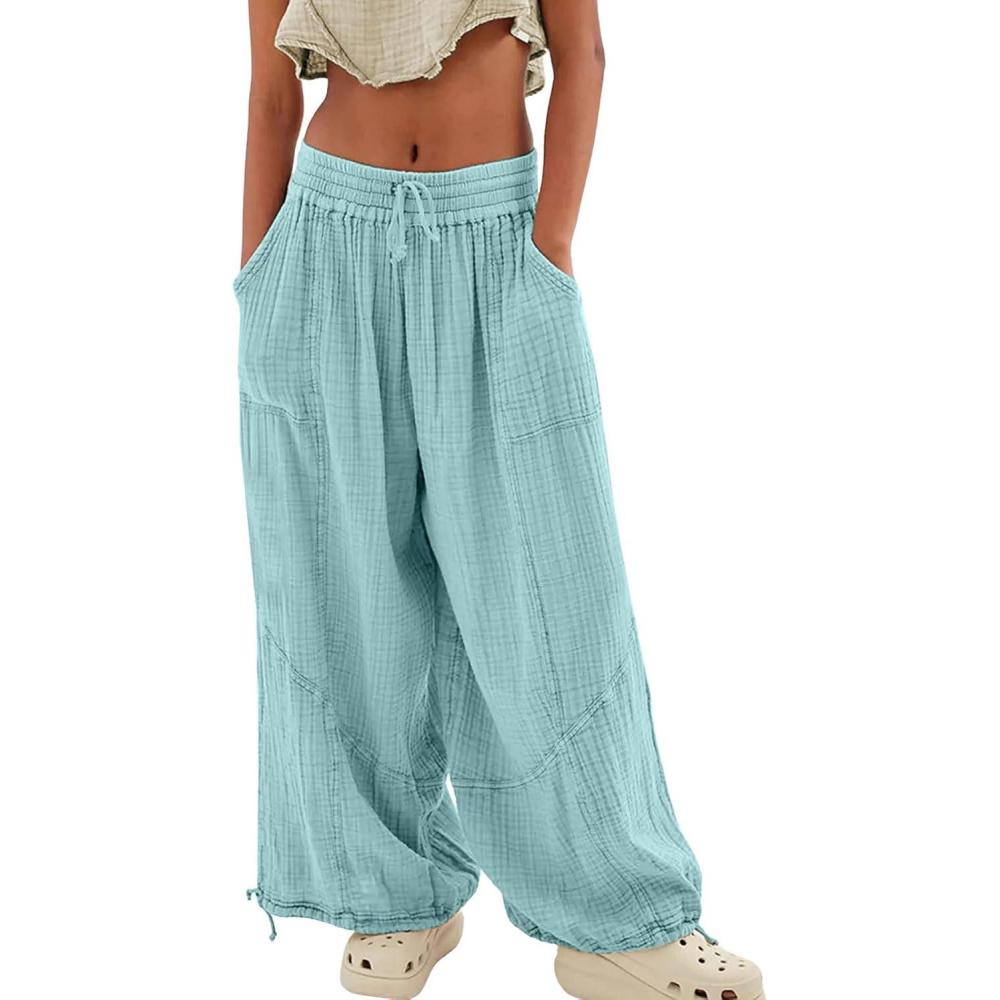CHARTOU Women’s Casual High Rise Wide Leg Palazzo Pants Baggy Elastic Waist Drawstring Beach Cargo Pants(Light Blue)