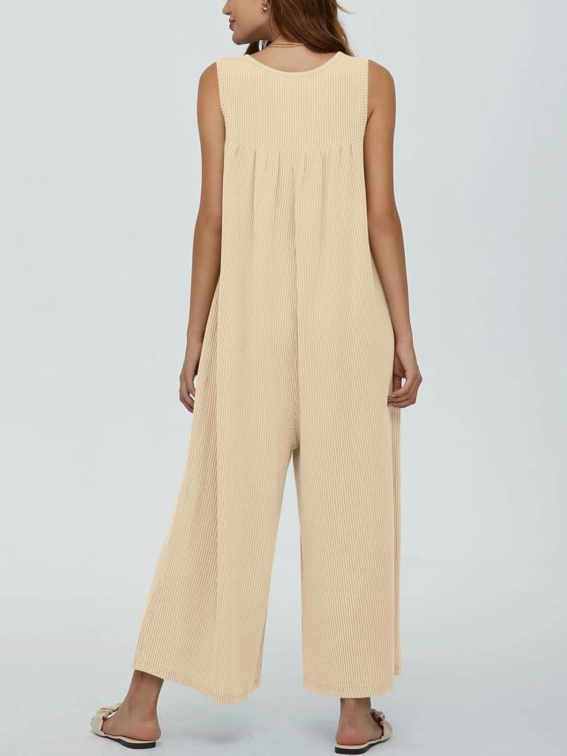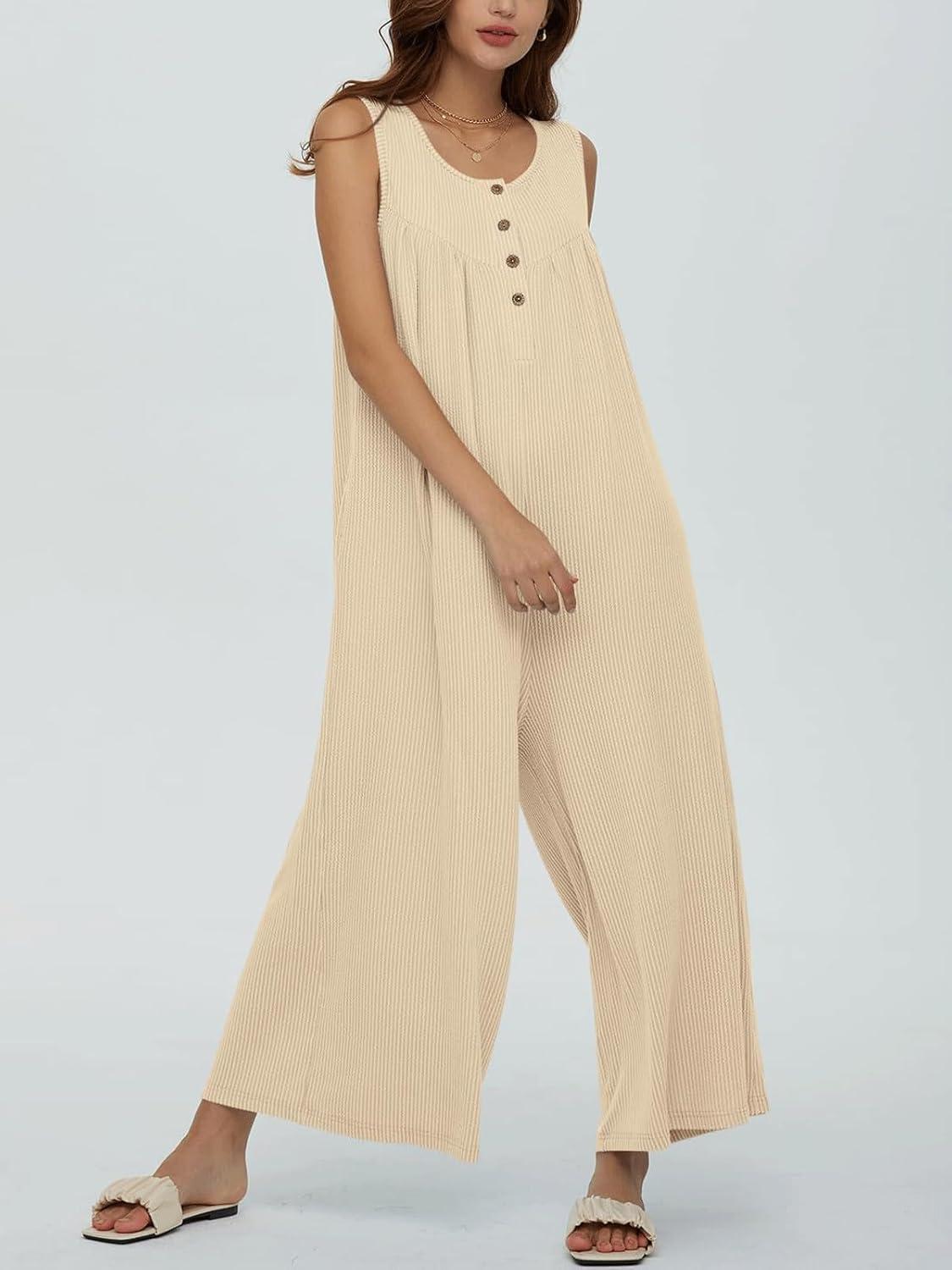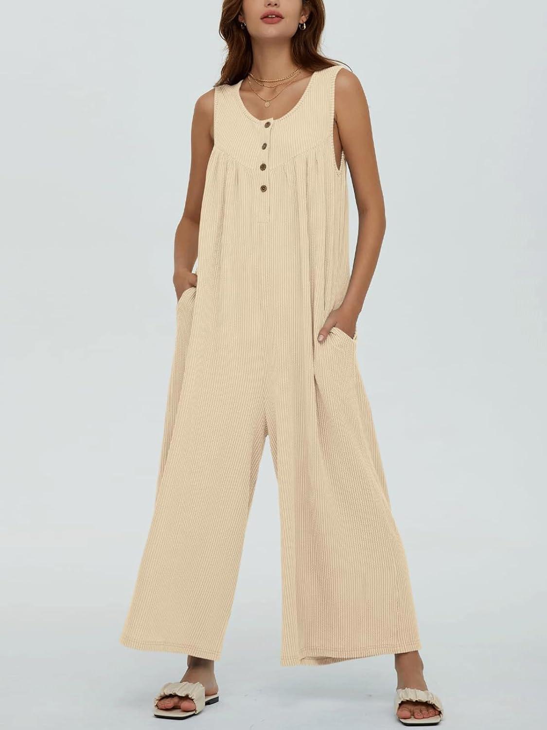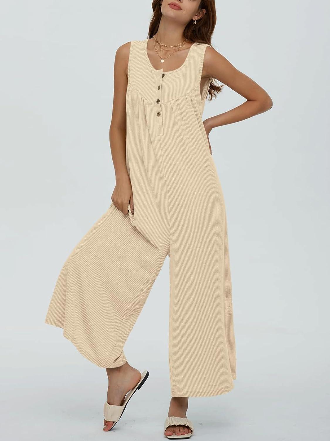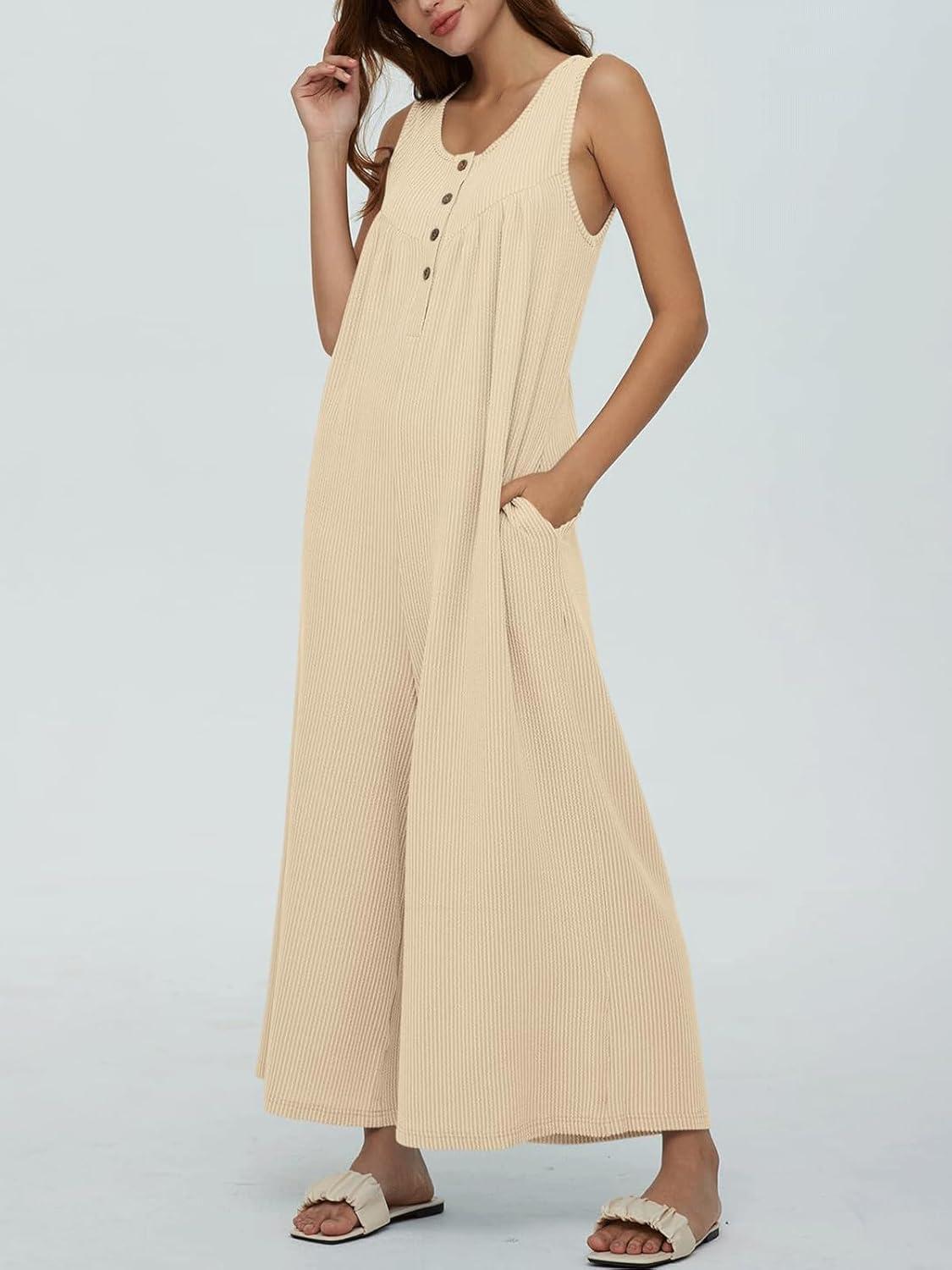 CHARTOU Women's Casual Loose Ribbed Overalls Jumpsuits Sleeveless Button Romper Wide Leg Pants Flowy Simple But Trend-on: Womens Fall Winter Rib Overalls Outfits Cute Design for Trendy Outfits Women: Front button down closure, easy to put on and take off, sleeveless, v neck, wide leg pants baggy, flowy pants overalls, ribbed, front pleated, casual style, 2 side pockets, lightweight, durable, soft and comfy, solid color-black rompers long, blue, navy, grey, apricot, green Womens Jumpsuits and Rompers Casual: Fall outfits cute jumpsuits for women dressy/ Trendy wide leg pants baggy rompers for women 2024/ Ribbed black jumpsuits for women dressy/ Flowy pants overalls for women loose fit/ Sleeveless black rompers for women work outfits trendy/ Maternity romper one piece jumpsuit dressy Occasion: One piece overalls long romper Suitable for travel, vacation, office, shopping, cocktail, daily life, weekends, school, hang out. Great pair with vest, tank top, jacket, tees, sweater Women sleeveless black romper one piece overalls for women 2024 casual rib work cute outfits for women wide leg pants baggy jumpsuits for women dressy button up fall outfits for women 2024 plus size maternity dresses romper flowy pants with pockets