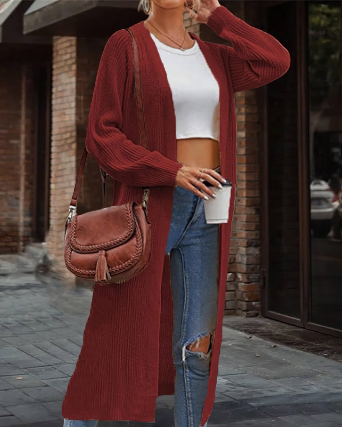CHARTOU Women’s Casual Open Front Cardigan Sweater Oversized Long Maxi Knitted Duster(Burgundy)