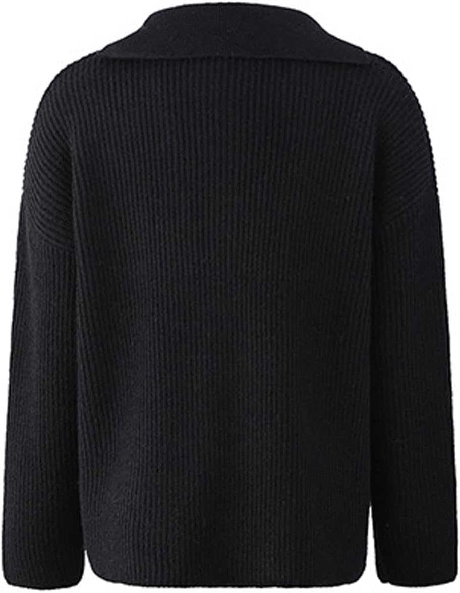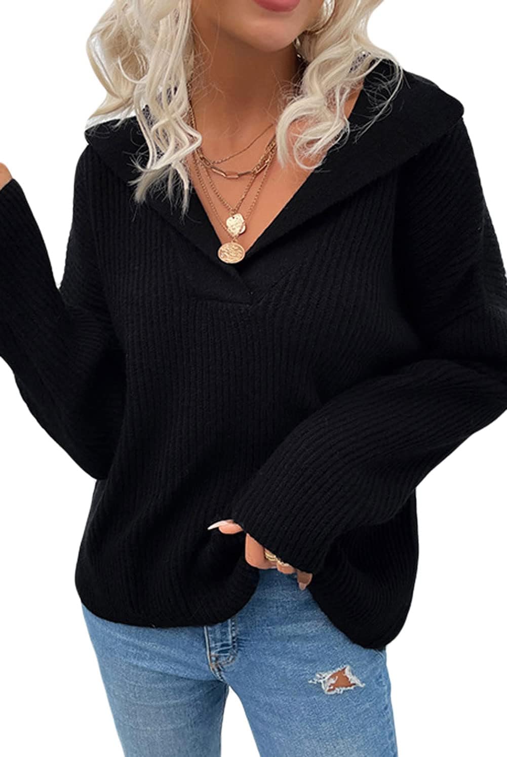 CHARTOU Women’s Casual Shawl Collar Drop Shoulder Knitted Ribbed Sweater Jersey Jumper Tops(Black)