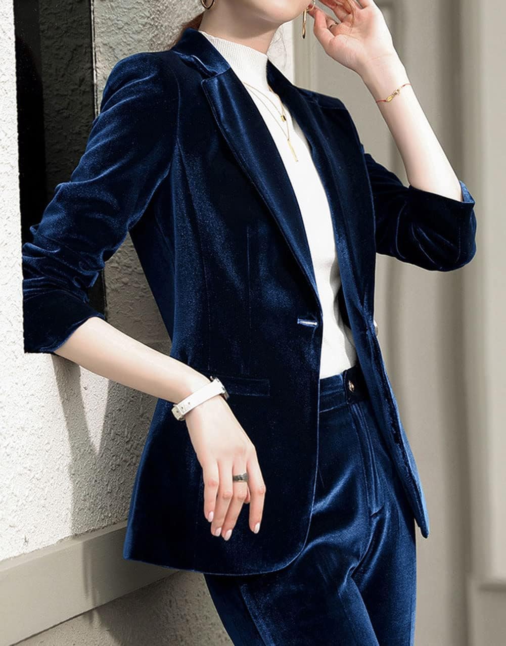 CHARTOU Women’s Casual Velvet Lightweight Button Down Jacket Outwear(Blue)
