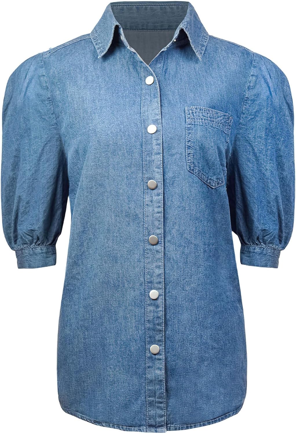 CHARTOU Women’s Casual Washed Distressed Puff Sleeve Denim Button Down Shirt Jean Jacket Coat(Blue)