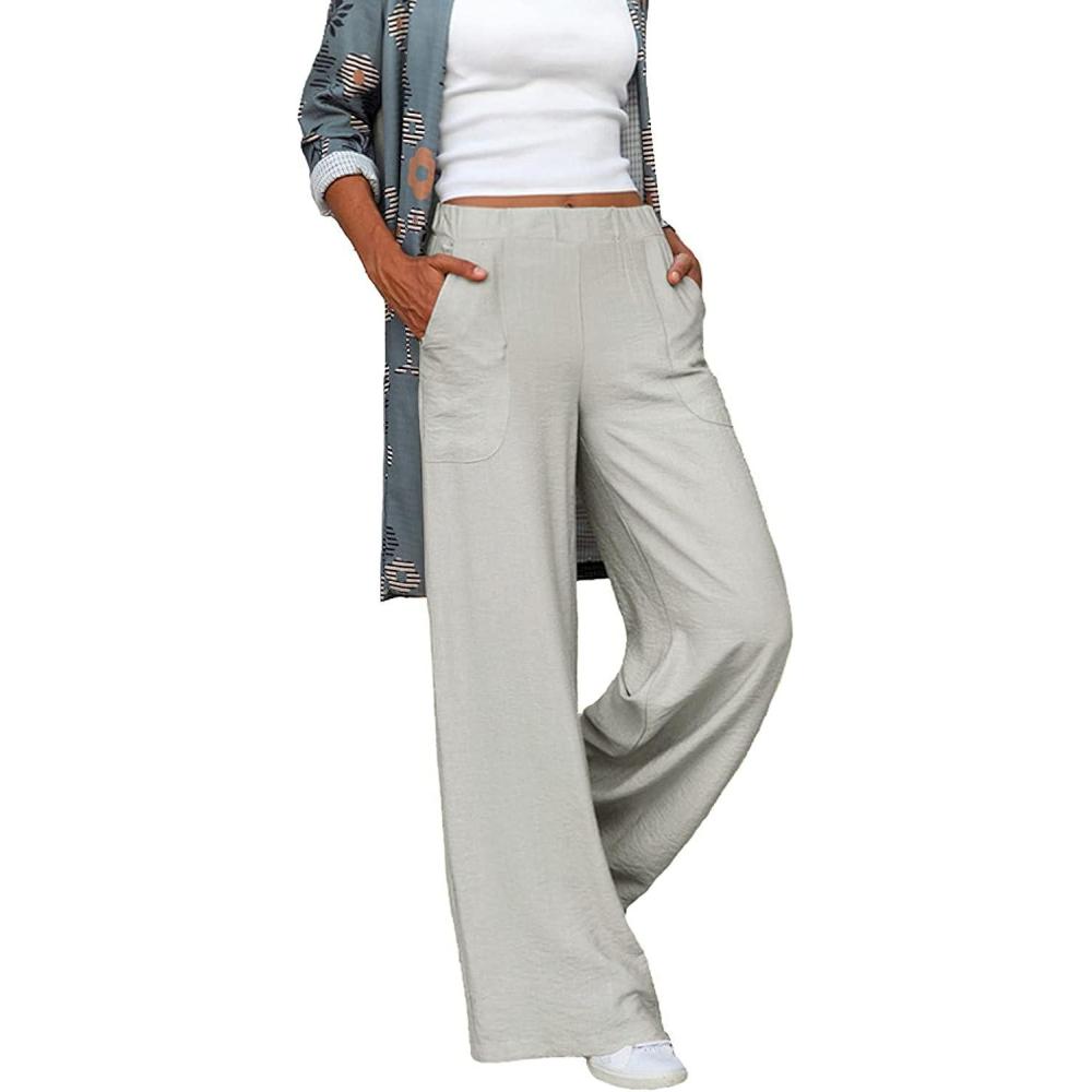 CHARTOU Women’s Casual Yoga Elastic Waist Wide Leg Long Loose Beach Palazzo Pants(Light Grey)