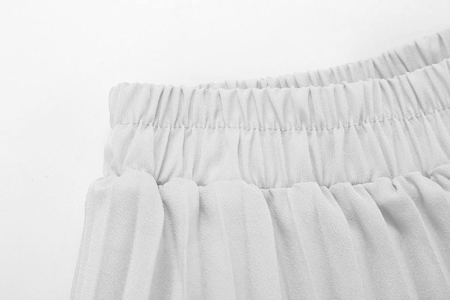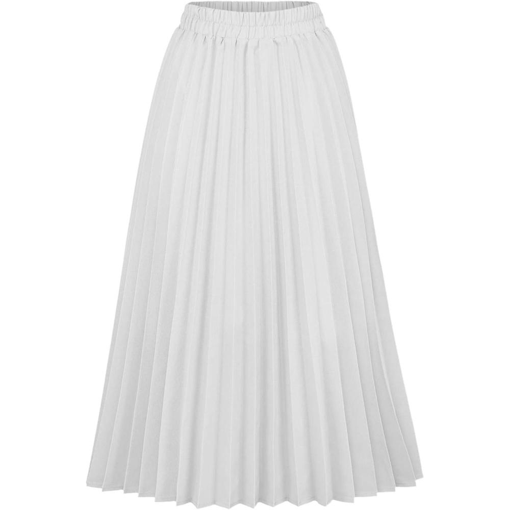 CHARTOU Womens Chic Elastic High Waisted A Line Leopard Print Pleated Shirring Midi-Long Skirt(White)