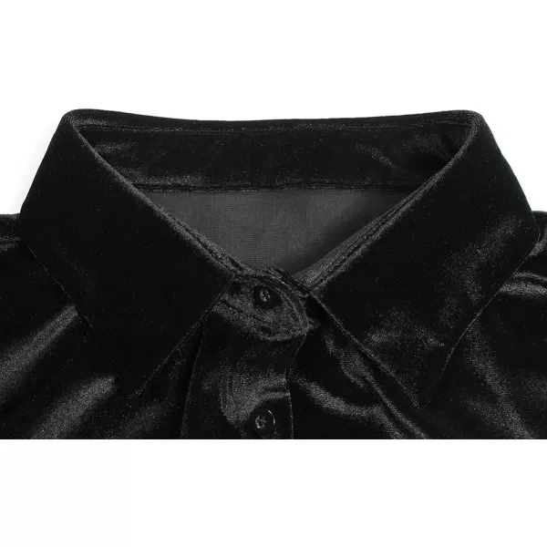 CHARTOU Women’s Chic Velvet Spread Collar Button Down Irregular Hi-Low Blouse Shirt Tops(Black)