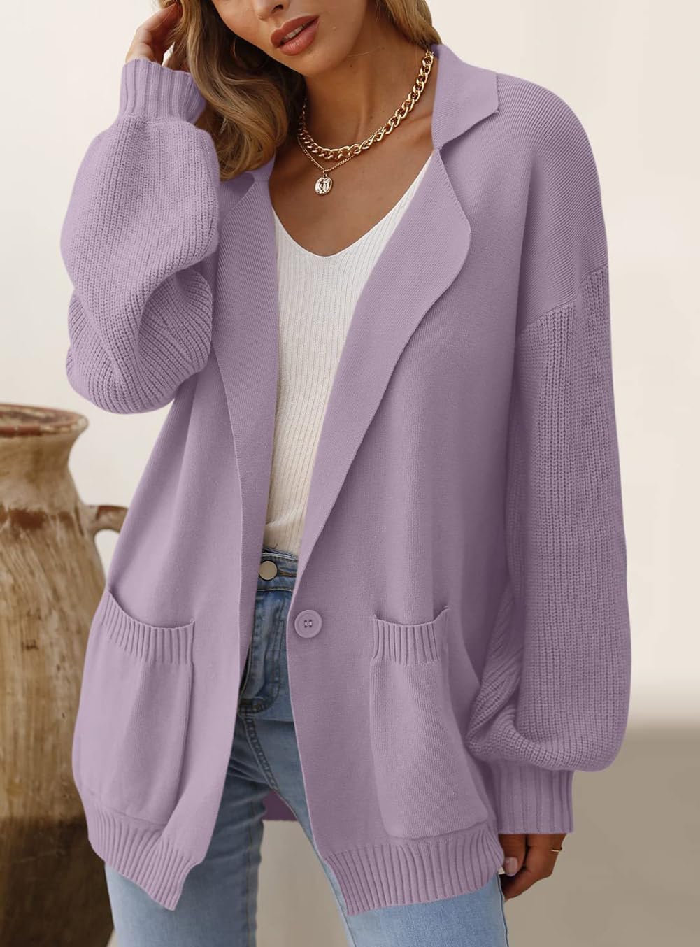 Be the first to review “CHARTOU Women’s Chunky Knit Coatigan Notched Collar Open Front Cardigan Blazer Sweater(Purple)”