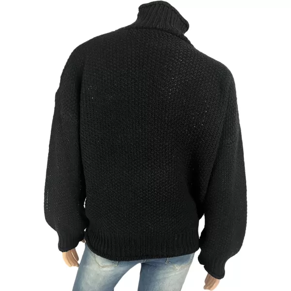 CHARTOU Women’s Chunky Turtleneck Batwing Sleeve Cable Knit Sweater Pullover Top(Black)
