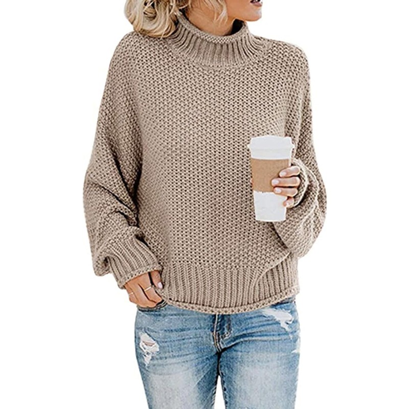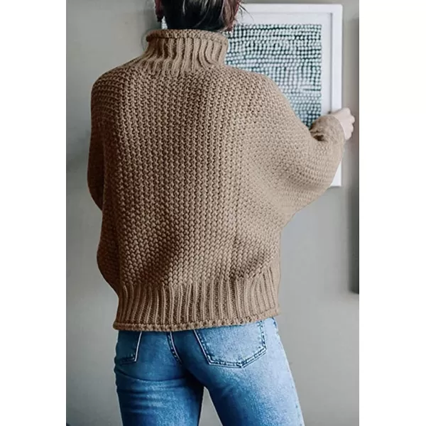 CHARTOU Women’s Chunky Turtleneck Batwing Sleeve Cable Knit Sweater Pullover Top(Khaki)