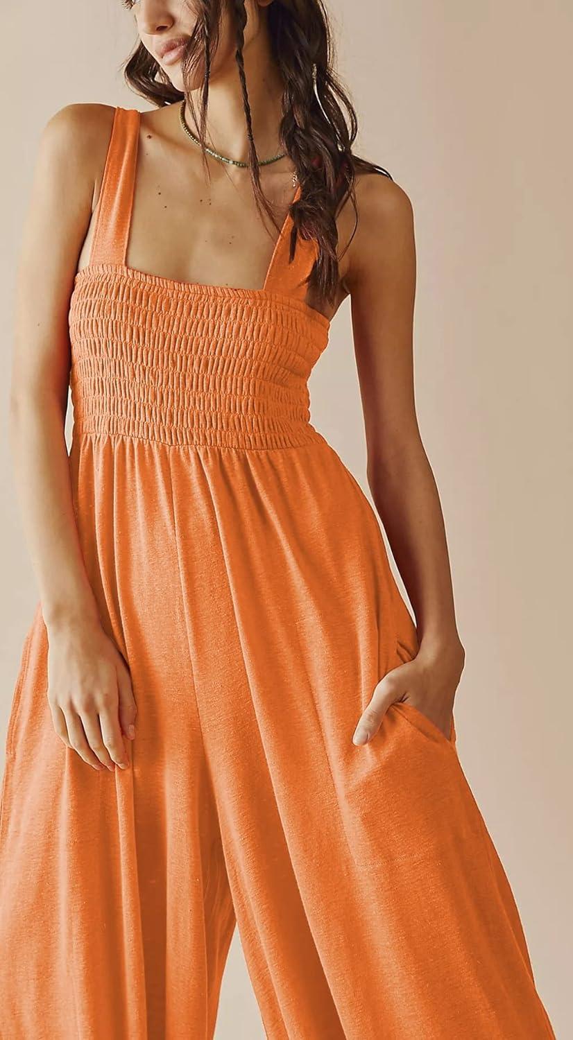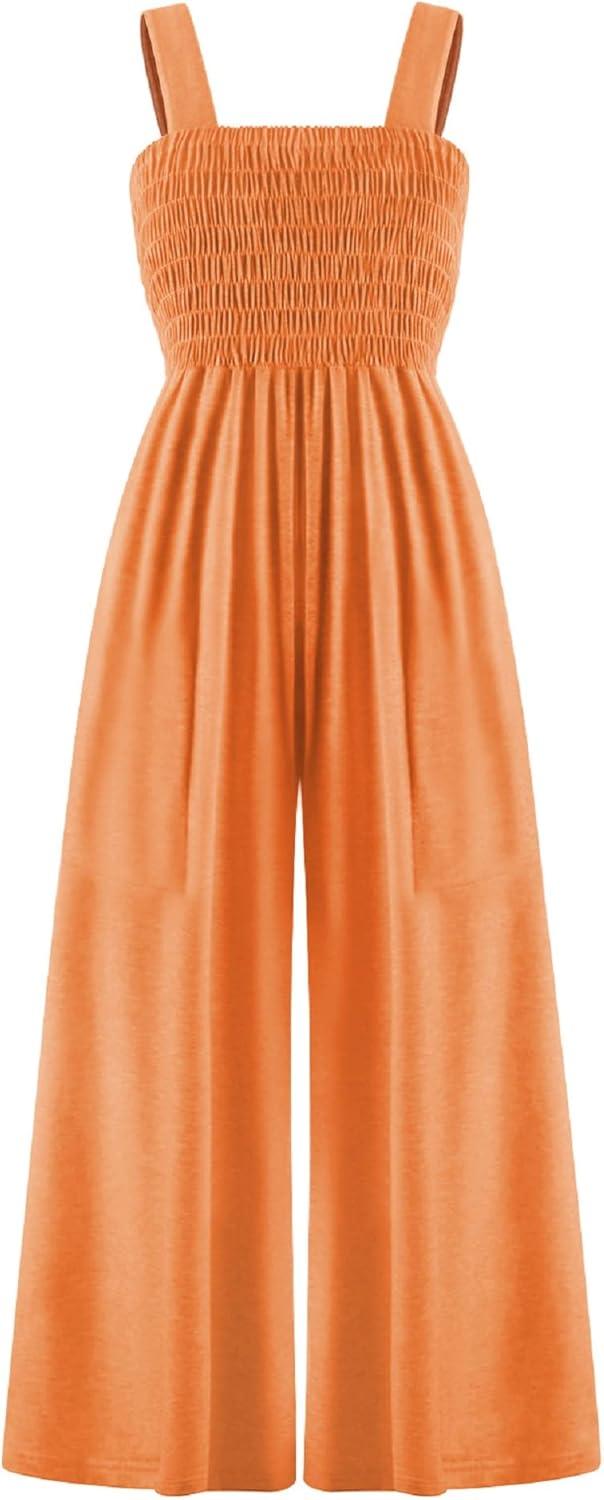 Be the first to review “CHARTOU Women’s Comfy Sleeveless Ruched Smock High Waist Wide-Leg Palazzo Pants Jumpsuit(Orange)”