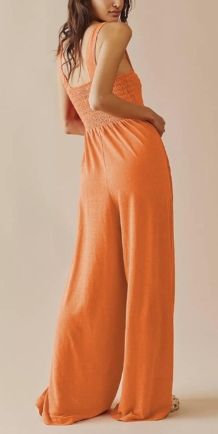 CHARTOU Women’s Comfy Sleeveless Ruched Smock High Waist Wide-Leg Palazzo Pants Jumpsuit(Orange)