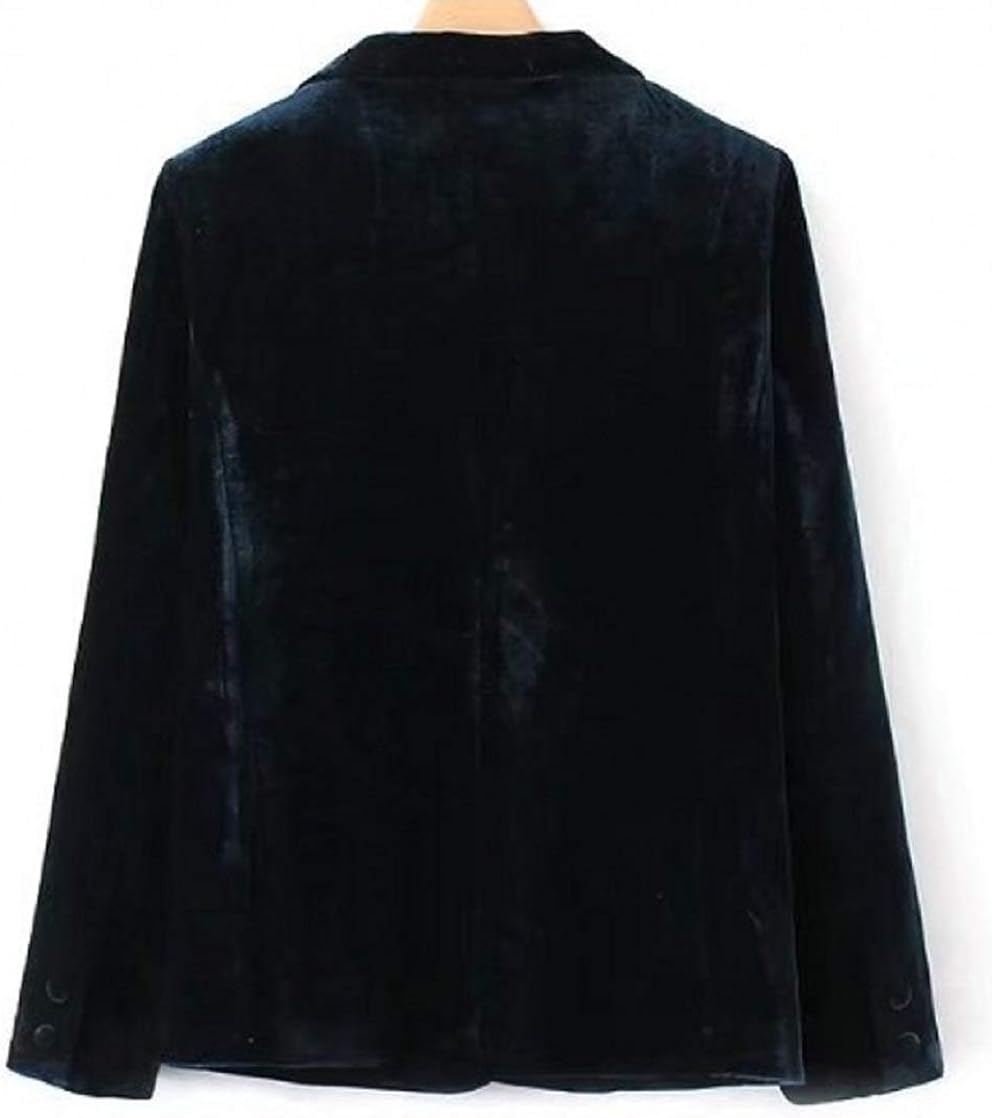CHARTOU Women’s Comfy Tailored Collar Shimmer Velvet 1-Button Blazer Suit Jacket(Blue)