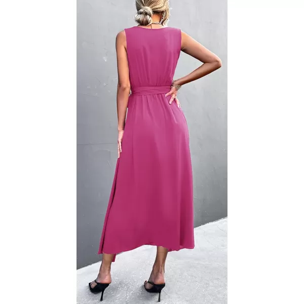 CHARTOU Women’s Comfy V Neck Crisscross Wrap Belt Split Sleeveless A-Line Tank Dress(Rose)