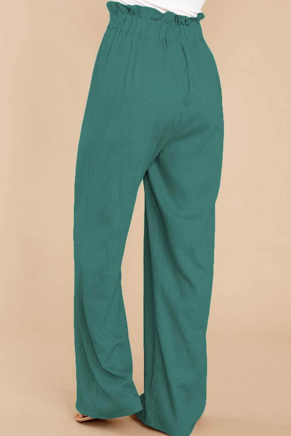 CHARTOU Women’s Cotton Linen Loose Fit Palazzo Pants Casual Elastic High Waist Wide Leg Paper Bag Pants with Pockets(Green)