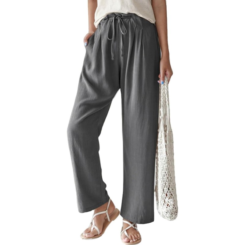 Be the first to review “CHARTOU Women’s Cotton Linen Palazzo Pants Casual Drawstring Elastic Waist Wide Leg Beach Pants with Pockets(Grey)” Cancel reply