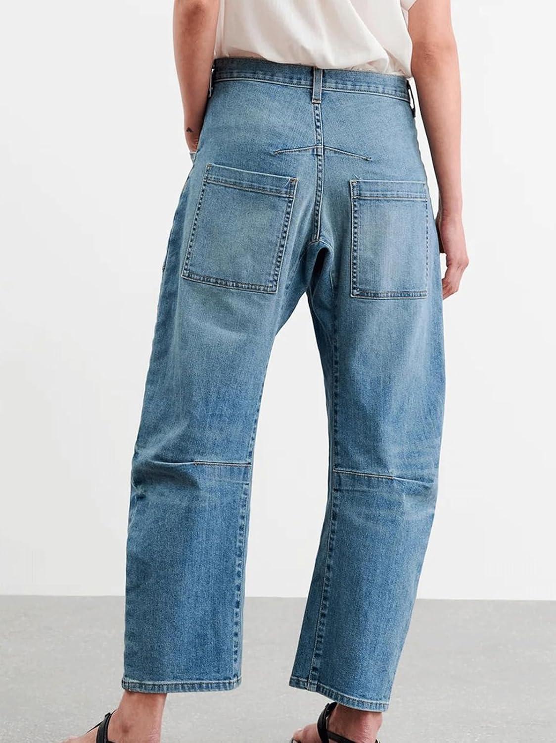 CHARTOU Women’s Cropped Mid Rise Barrel Jeans Pants Baggy Horseshoe Boyfriend Denim Pants Cargo Y2k Jeans(Light Blue)