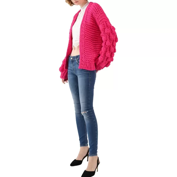 CHARTOU Women’s Cute Lantern Sleeve Cable Knit Sweater Jacket Crochet Open Front Cardigan(Rosy)