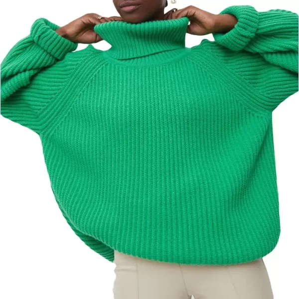 CHARTOU Women’s Cute Turtleneck Knit Ribbed Sweater Knitwear Pullover Top(Green)