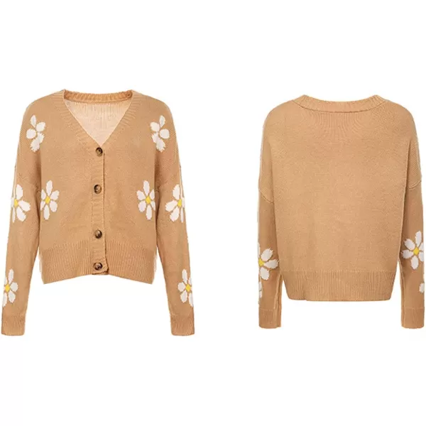 CHARTOU Women’s Cute V Neck Button Down Knit Cardigan Sweater(Camel)