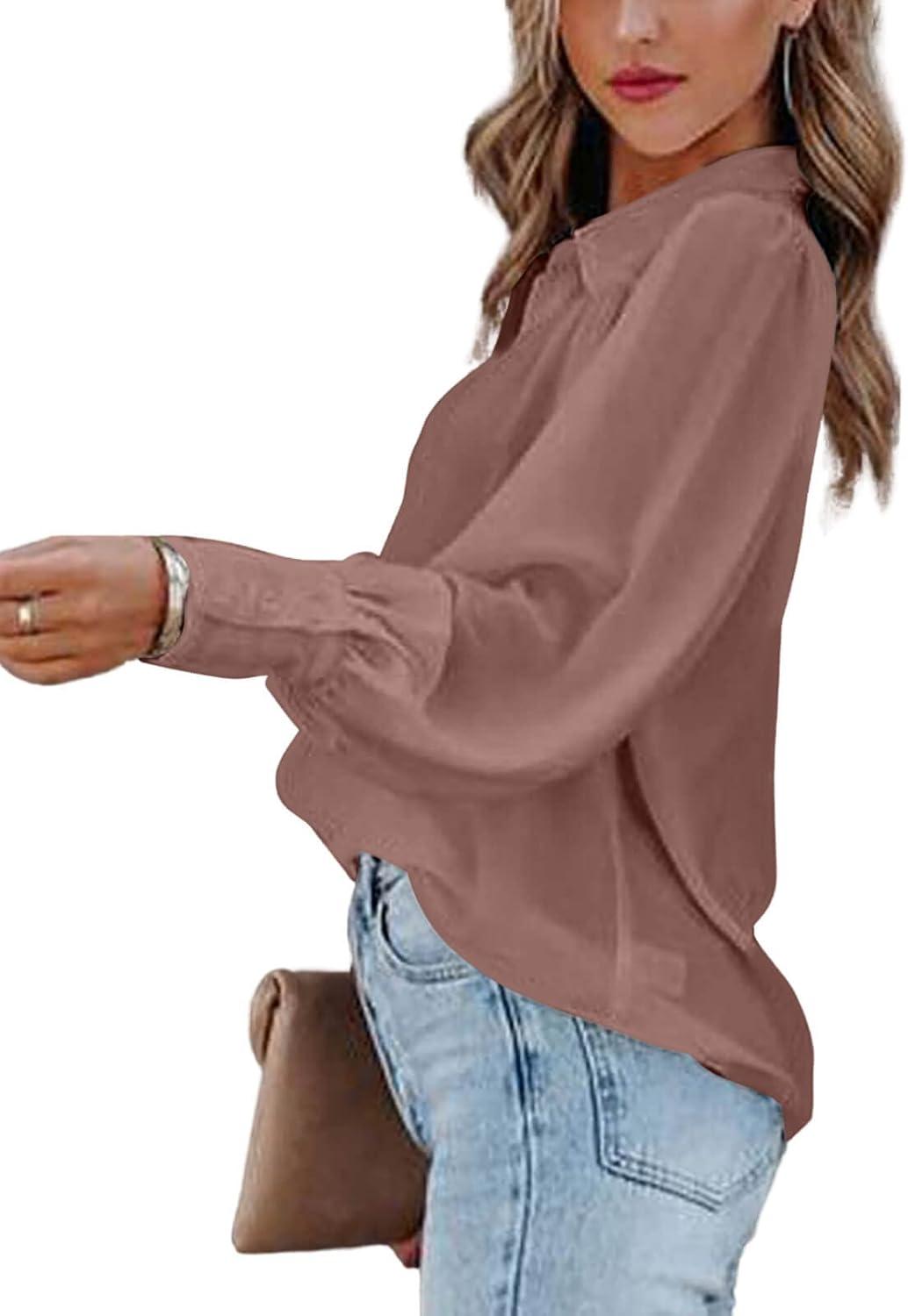 CHARTOU Women’s Dressy Casual Lapel Collar Pleated Lantern Sleeve Button Down Shirt(Dusty Pink)