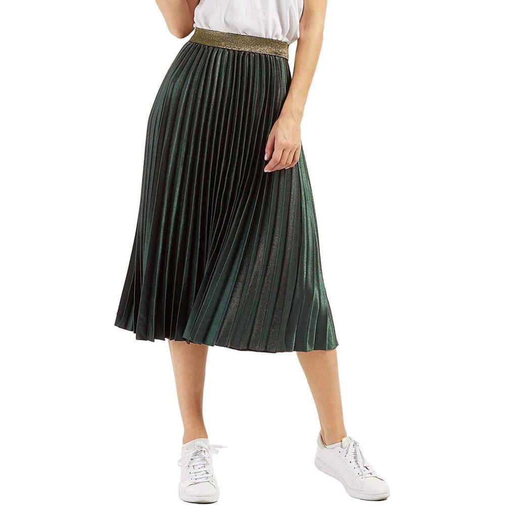 CHARTOU Womens Elastic-Waist Accordion Pleated Metallic Long Party Skirt(Army Green)
