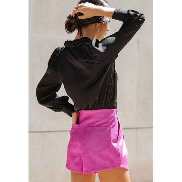 CHARTOU Women’s Elegant High Waist Pu Faux Leather Basic Mini Shorts(Rose)