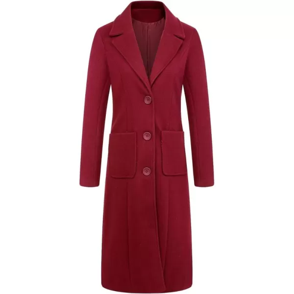 CHARTOU Women’s Elegant Lapel Collar Single Breast Wool Blend Overcoat Outwear(Wine Red)