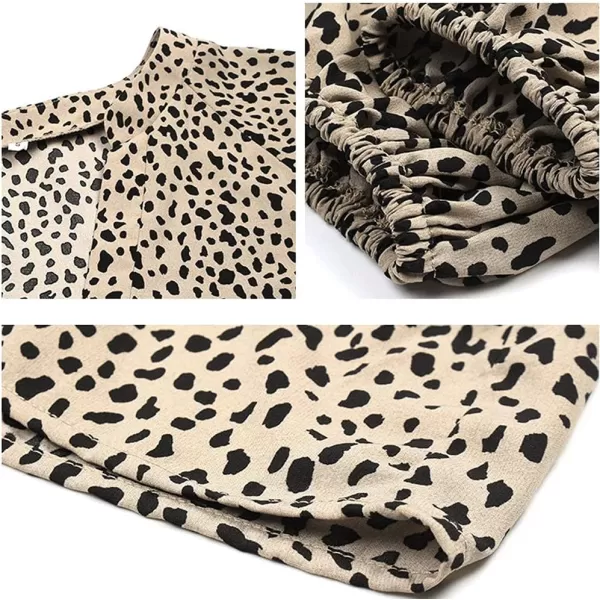 CHARTOU Women’s Elegant Leopard Lantern Sleeve Pleated A-Line Midi Dress(Khaki)