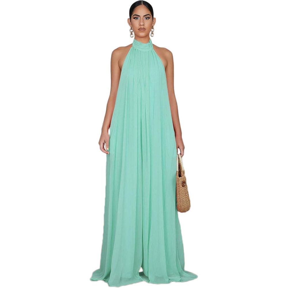 CHARTOU Women’s Elegant Loose Fit Chiffon Halter Neck Backless Wide Leg Jumpsuit(Light Blue)