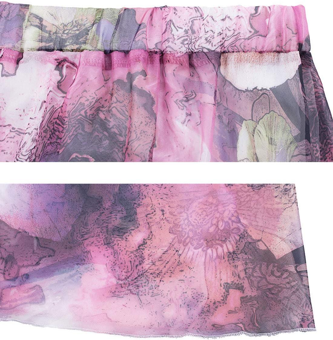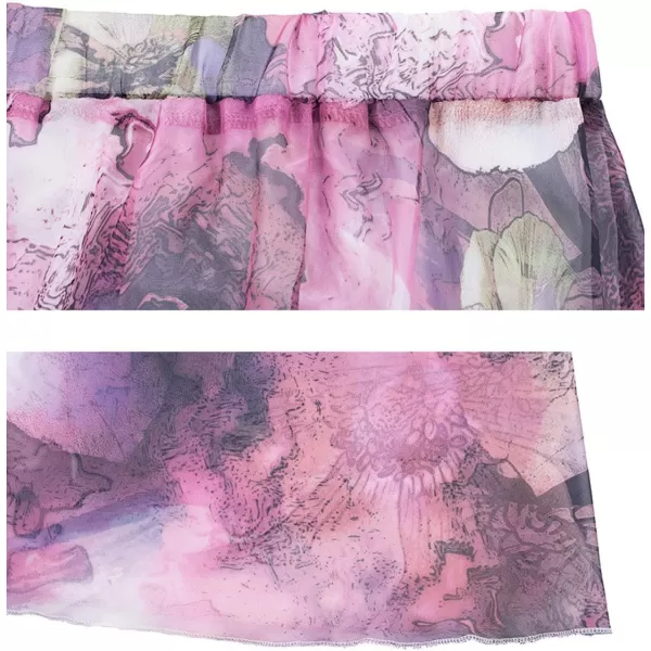 CHARTOU Women’s Elegant Summer Full Length Boho Floral Print Pleated Chiffon Long Maxi Skirt Dress(Purple-knee Length)