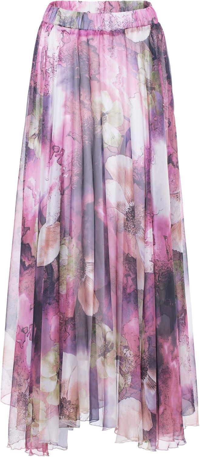 CHARTOU Women’s Elegant Summer Full Length Boho Floral Print Pleated Chiffon Long Maxi Skirt Dress(Purple)