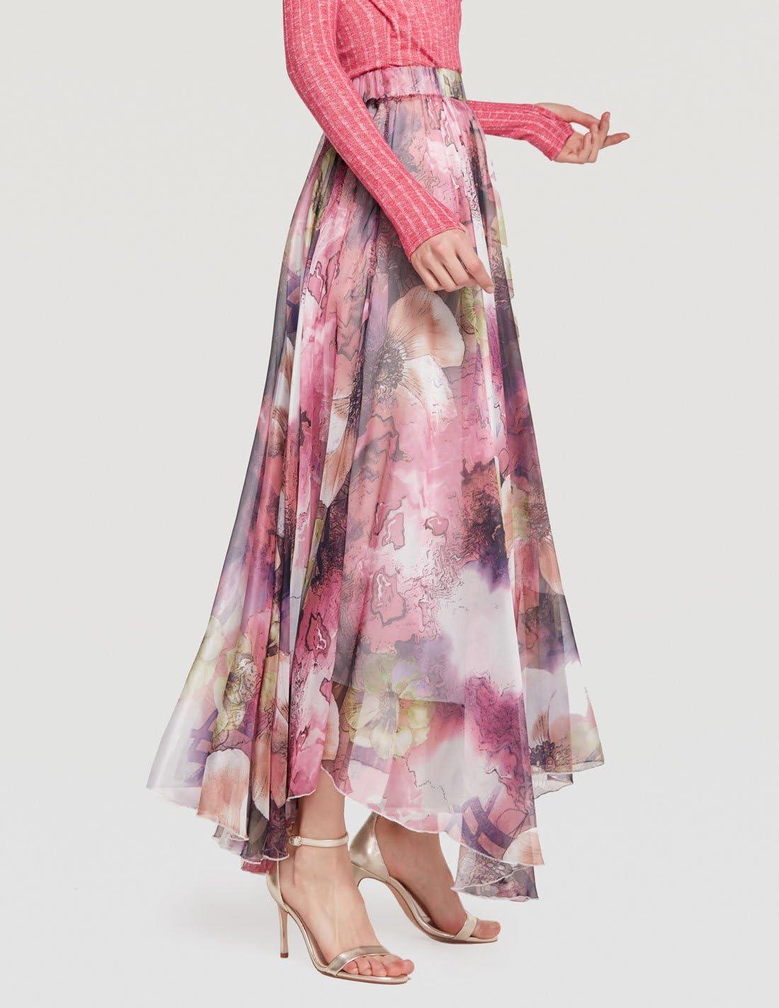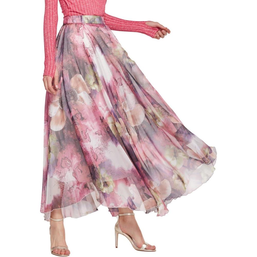 imageCHARTOU Womens Elegant Summer Full Length Boho Floral Print Pleated Chiffon Long Maxi Skirt DressPurpleknee Length