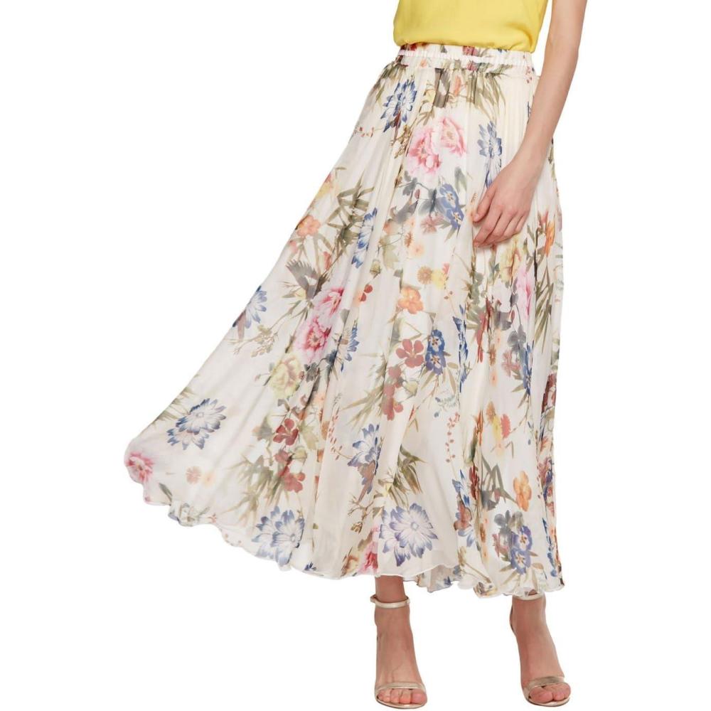 imageCHARTOU Womens Elegant Summer Full Length Boho Floral Print Pleated Chiffon Long Maxi Skirt DressWhiteknee Length