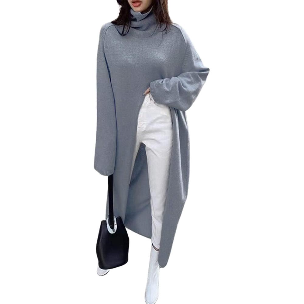 CHARTOU Women’s Elegant Turtleneck High Slit Maxi Long Knitted Sweater Dress(Grey)