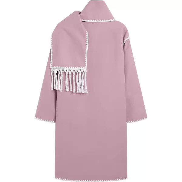 CHARTOU Women’s Embroidered Scarf Wool Blend Coat Single Breasted Winter Wool Overcoat with Tassel Scarf(Pink)