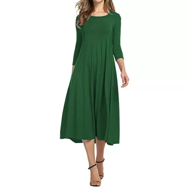 CHARTOU Women’s Essential Pleated Flowy Tunic Midi Dress 3/4 Sleeve Modest Ruffle Swing Dress(Olive Green)