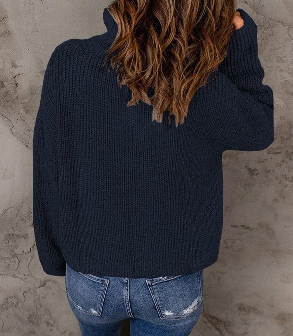CHARTOU Women’s Fall 1/4 Zipper Bat-Wing Sleeve Oversized Sweatshirt Slouchy Jumper Pullover Sweater(Navy)