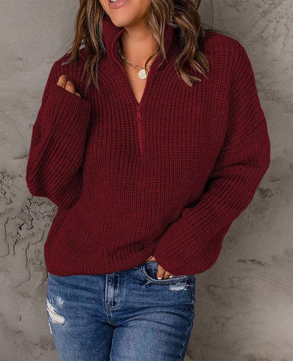 CHARTOU Women’s Fall 1/4 Zipper Bat-Wing Sleeve Oversized Sweatshirt Slouchy Jumper Pullover Sweater(Wine)
