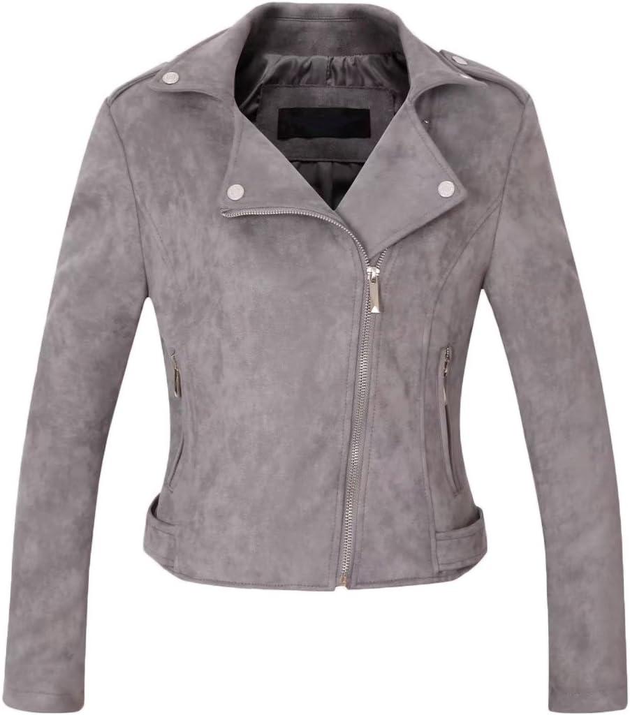 CHARTOU Women’s Fall 2023 Fashion Faux Suede Leather Casual Moto Biker Jacket Coats(Grey)