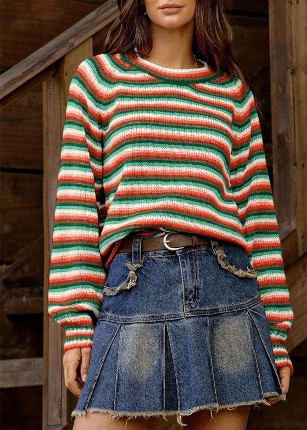 Women's Fall Oversized Pullover Sweater Colorful Striped Lightweight Y2K Retro Crewneck Jumper Tops Bold contrast colors sweater women oversized sweatshirt for women premium knitwear Fall oversized sweaters for women trendy/ Crew neck striped sweatshirts boyfriend tops/ Classy rib knit sweaters womens/ Long sleeve jumper/ Womens fashion clothes/ Colorful y2k sweater/ Contrast color pullover sweaters women loose fit/ Lightweight sweater casual outwear teen girls streetwear Y2K-Inspired Retro women's pullover sweater Color block striped sweaters long sleeve crewneck pullover sweater loose boyfriend rib knit sweater pullover sweater Fall lightweight stripes knit sweater women colorful oversized sweatshirt for women cute top teen casual rib jumper dropped shoulder long sleeve pullover sweaters for women relaxed fit stretch contrast color sweater western comfy winter warm outfits