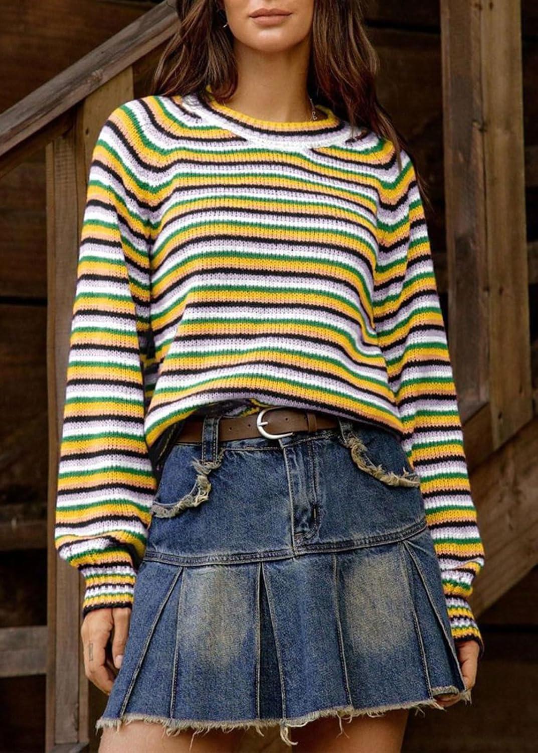 Score big savings on CHARTOU Women’s Fall Oversized Pullover Sweater Colorful Striped Lightweight Y2K Retro Crewneck Jumper Tops(Yellow) during our back-to-school sale. Limited quantities available.