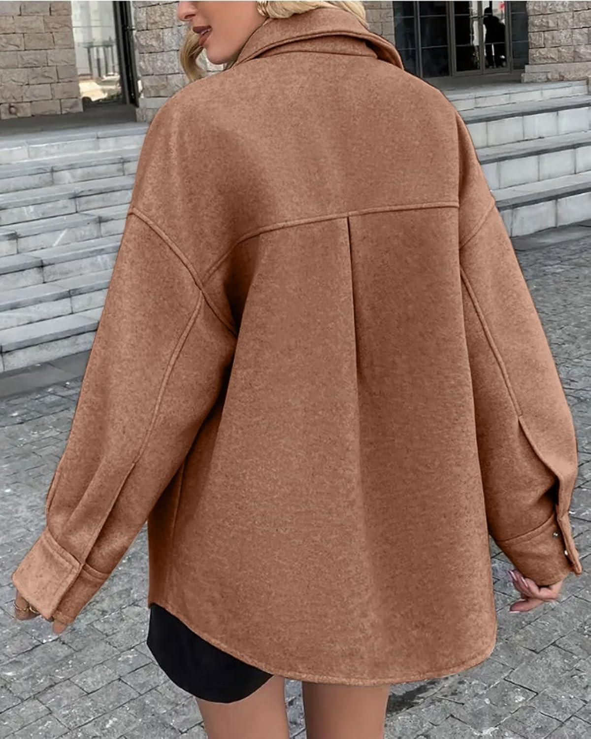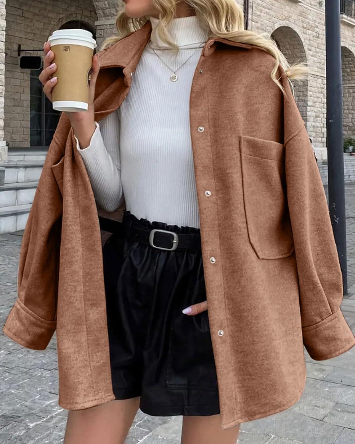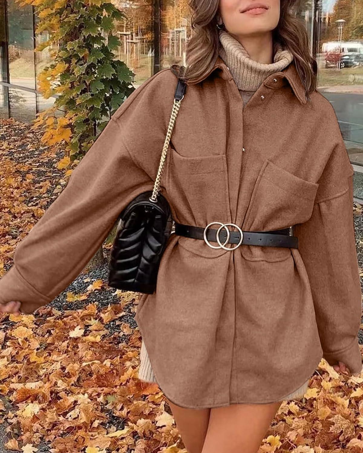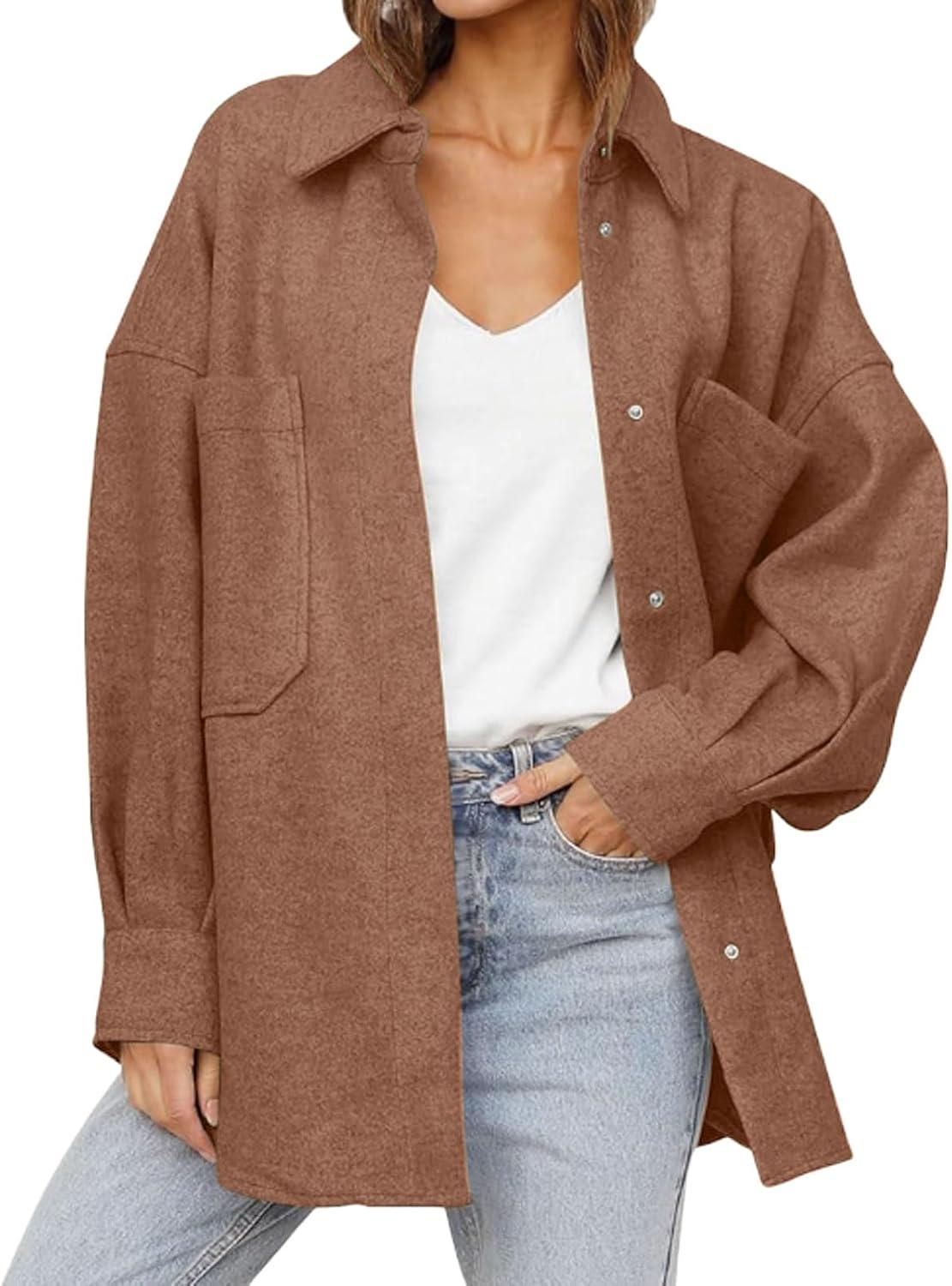 Women's Fall Thicken Shirt Jacket Wool Lapel Snap Button Mid Long Casual Work Coat with Pockets Classic collared shirt jacket for women/ Women winter wool coat with pockets/ Loose fit coatigan for women streetwear Oversized shirt coats for women long sleeve wool jacket women dressy warm comfrt outfits for spring fall and winter outwear Women's shirt coats cocoon long sleeve brown wool jacket blue shirt tops Trendy shirt jacket wool pea coats for women Trendy wool shirt coats for women fall fashion lapel collar wool jacket women western snap button midi peacoat womens coat with pockets casual oversized shirt brown trench coat women winter soft wool blend jackets for women classy outwear