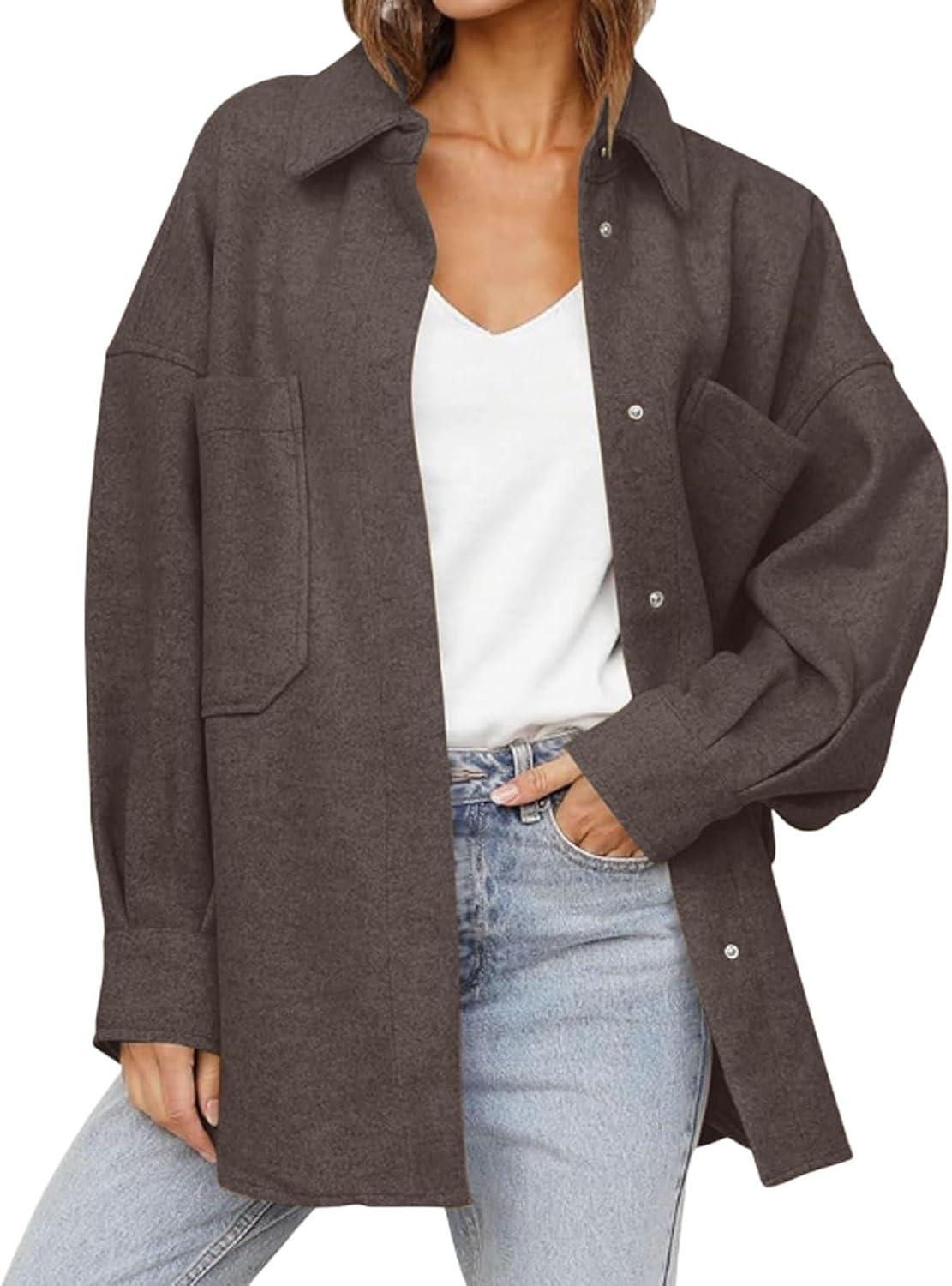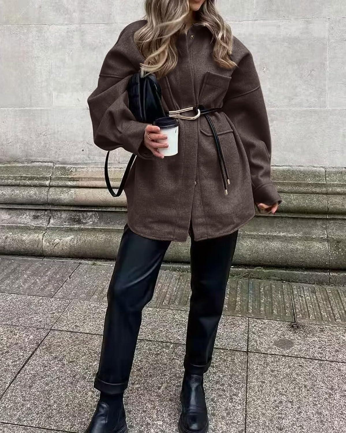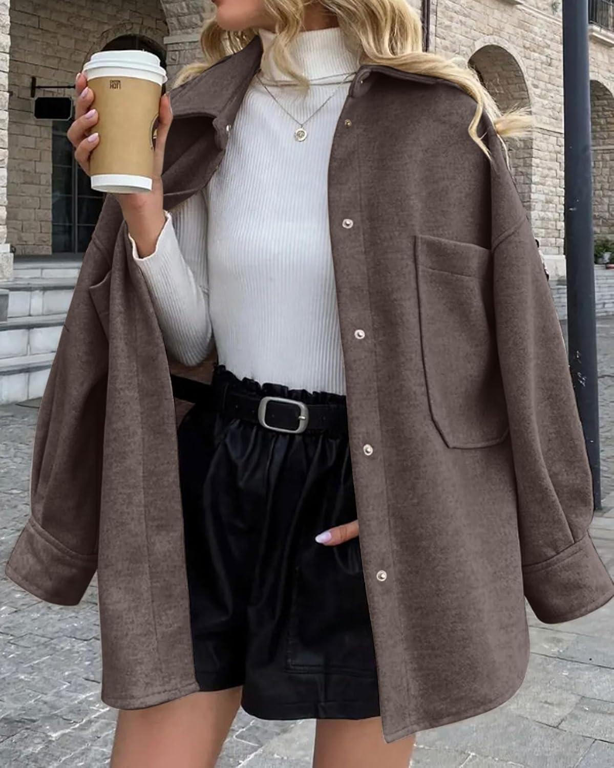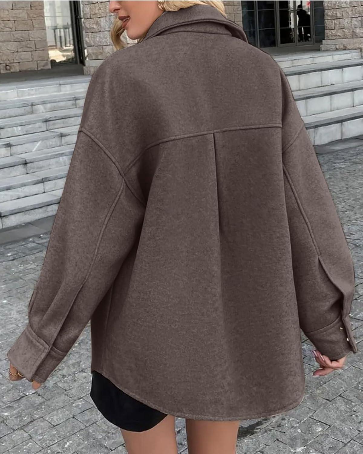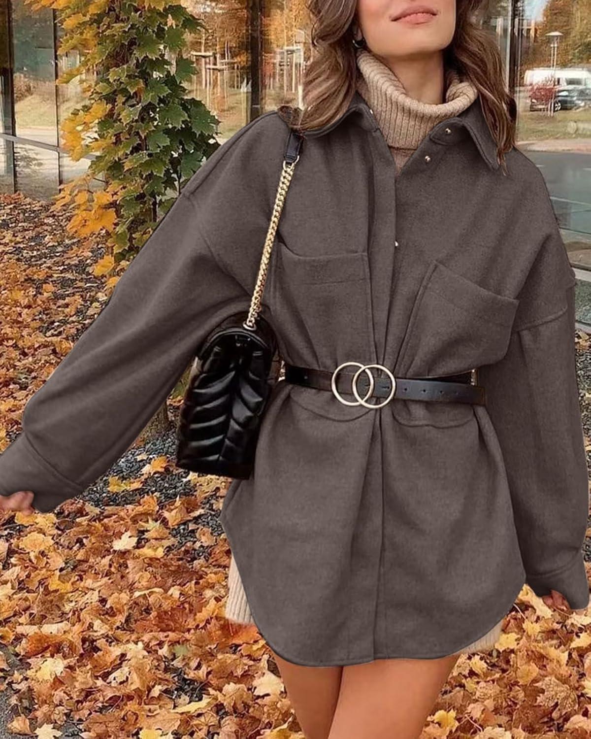 Women's Fall Thicken Shirt Jacket Wool Lapel Snap Button Mid Long Casual Work Coat with Pockets Classic collared shirt jacket for women/ Women winter wool coat with pockets/ Loose fit coatigan for women streetwear Oversized shirt coats for women long sleeve wool jacket women dressy warm comfrt outfits for spring fall and winter outwear Women's shirt coats cocoon long sleeve brown wool jacket blue shirt tops Trendy shirt jacket wool pea coats for women Trendy wool shirt coats for women fall fashion lapel collar wool jacket women western snap button midi peacoat womens coat with pockets casual oversized shirt brown trench coat women winter soft wool blend jackets for women classy outwear