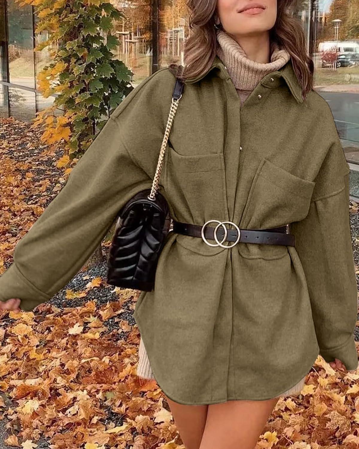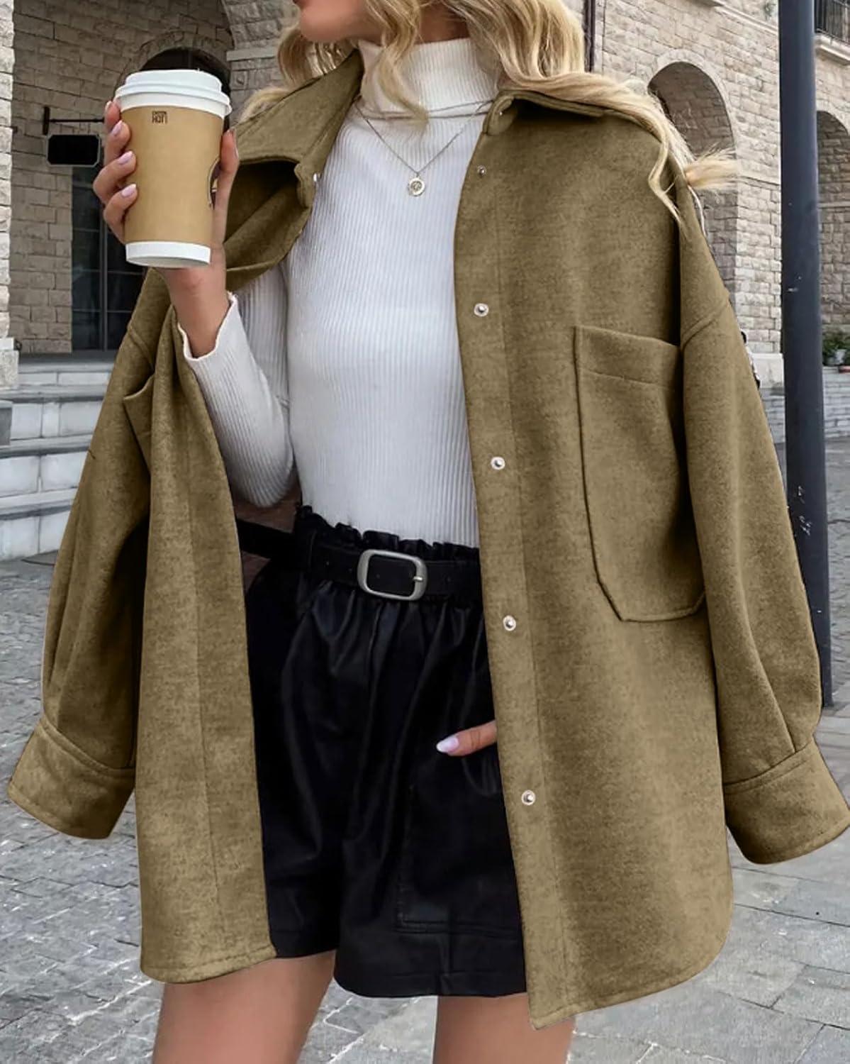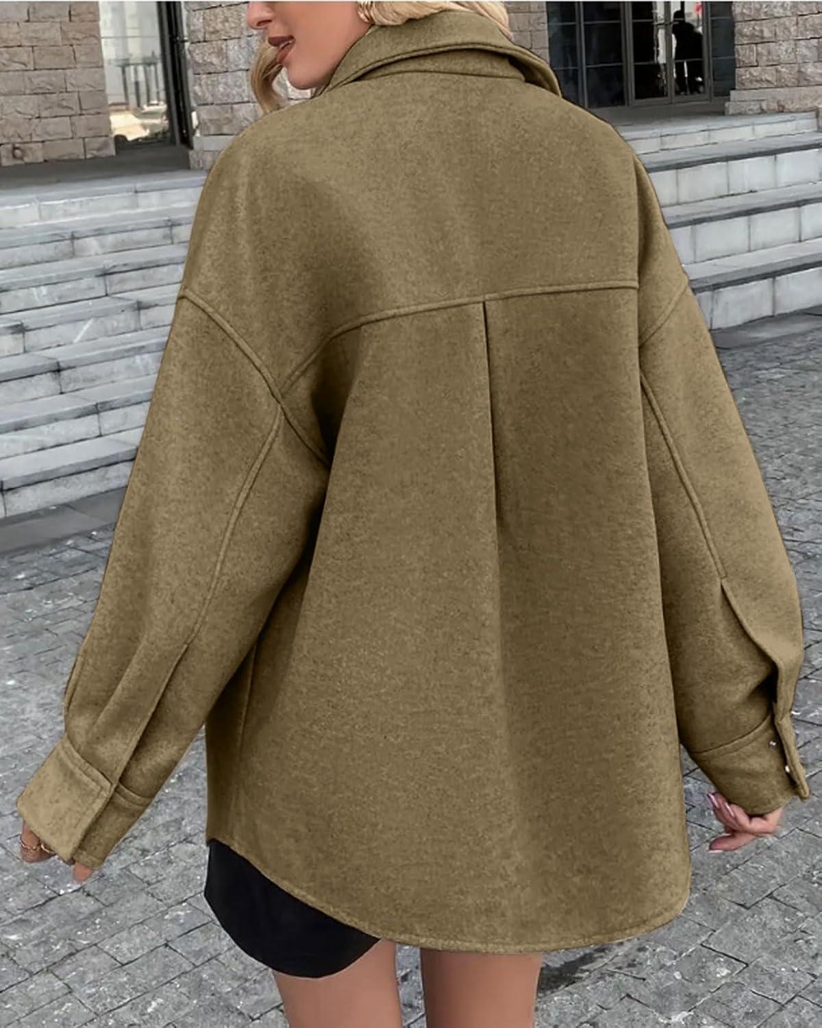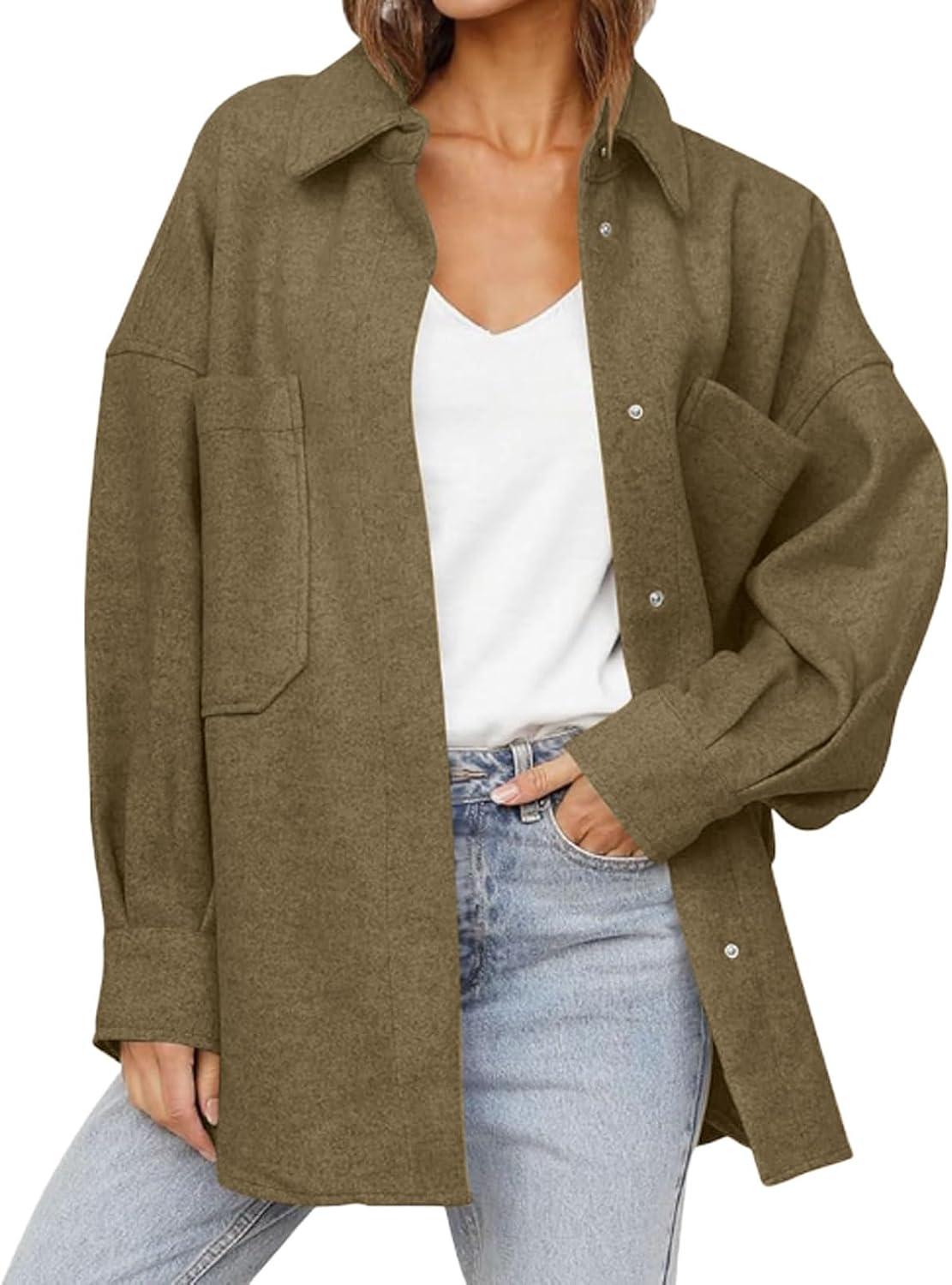 Women's Fall Thicken Shirt Jacket Wool Lapel Snap Button Mid Long Casual Work Coat with Pockets Classic collared shirt jacket for women/ Women winter wool coat with pockets/ Loose fit coatigan for women streetwear Oversized shirt coats for women long sleeve wool jacket women dressy warm comfrt outfits for spring fall and winter outwear Women's shirt coats cocoon long sleeve brown wool jacket blue shirt tops Trendy shirt jacket wool pea coats for women Trendy wool shirt coats for women fall fashion lapel collar wool jacket women western snap button midi peacoat womens coat with pockets casual oversized shirt brown trench coat women winter soft wool blend jackets for women classy outwear