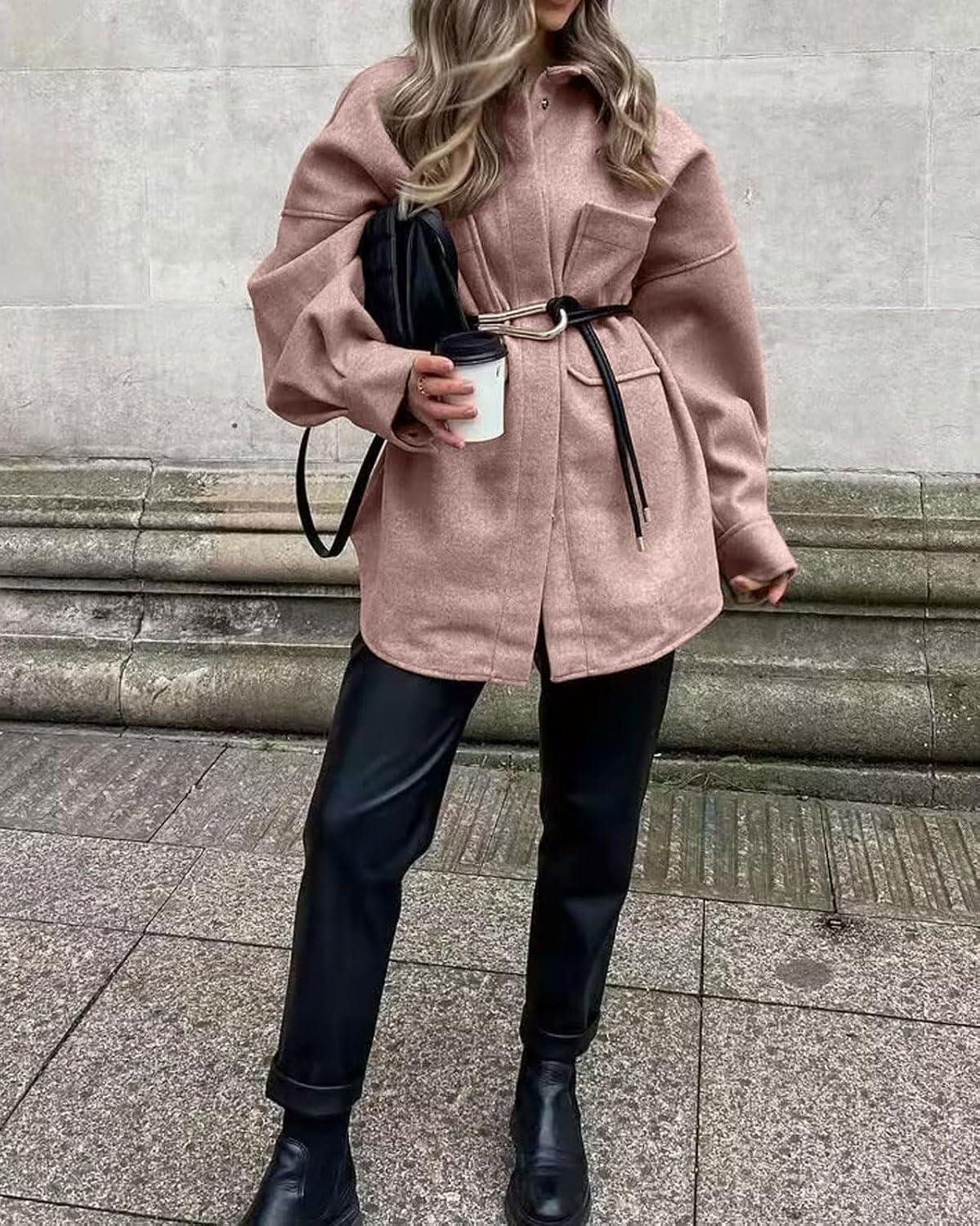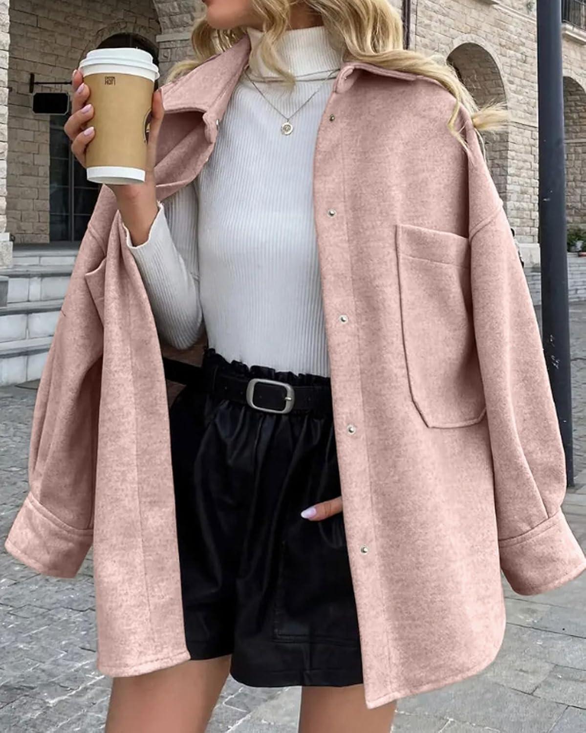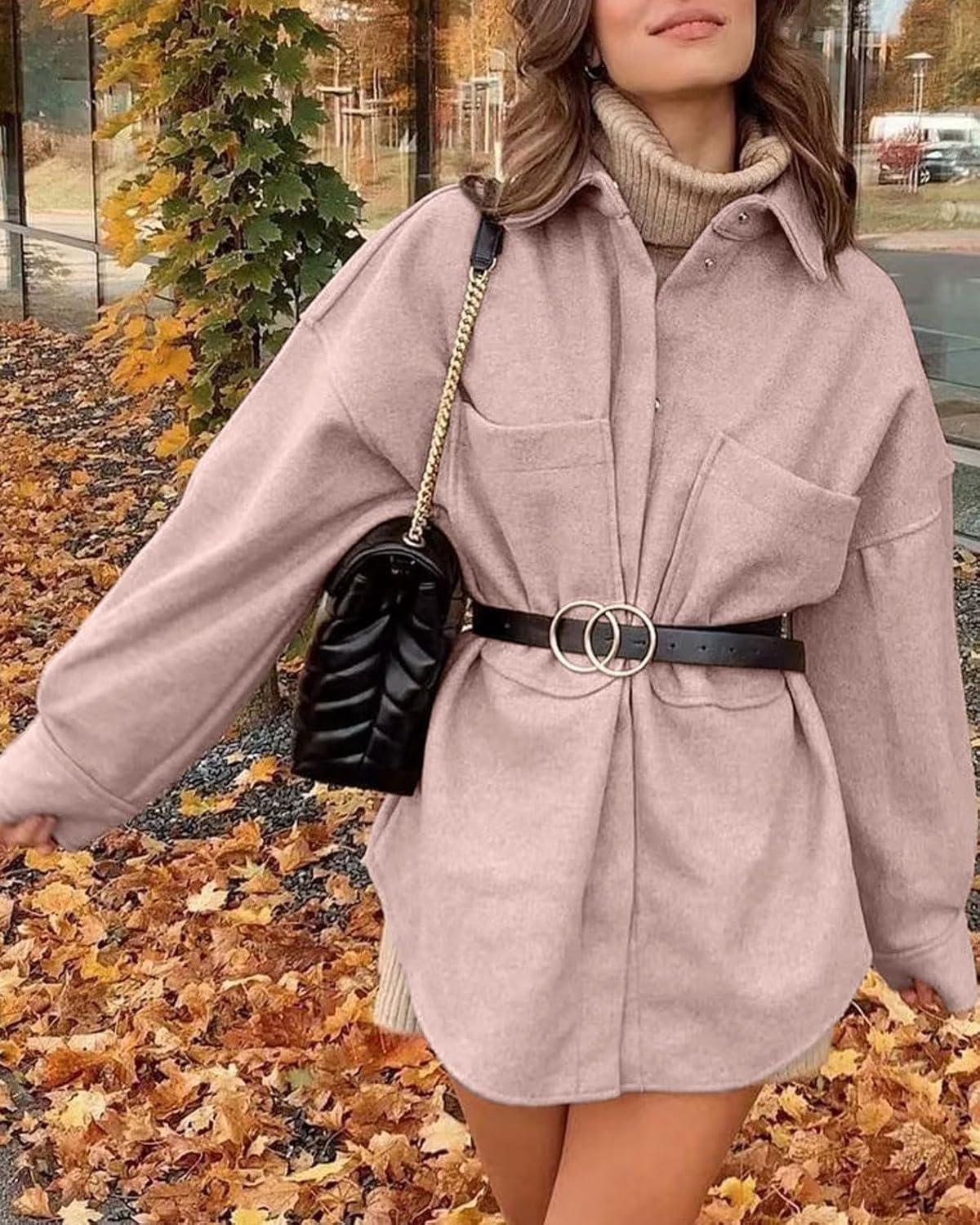 Women's Fall Thicken Shirt Jacket Wool Lapel Snap Button Mid Long Casual Work Coat with Pockets Classic collared shirt jacket for women/ Women winter wool coat with pockets/ Loose fit coatigan for women streetwear Oversized shirt coats for women long sleeve wool jacket women dressy warm comfrt outfits for spring fall and winter outwear Women's shirt coats cocoon long sleeve brown wool jacket blue shirt tops Trendy shirt jacket wool pea coats for women Trendy wool shirt coats for women fall fashion lapel collar wool jacket women western snap button midi peacoat womens coat with pockets casual oversized shirt brown trench coat women winter soft wool blend jackets for women classy outwear