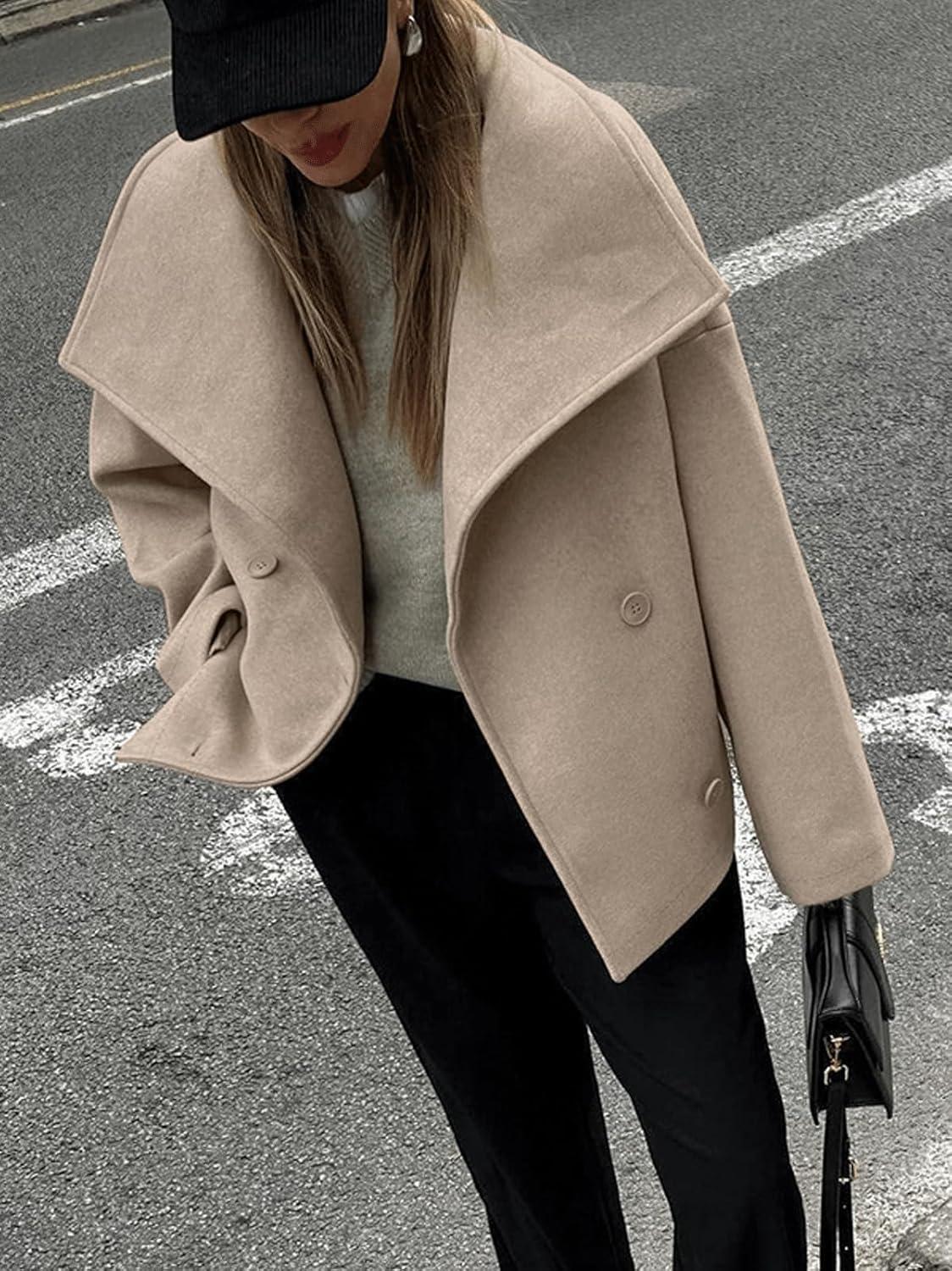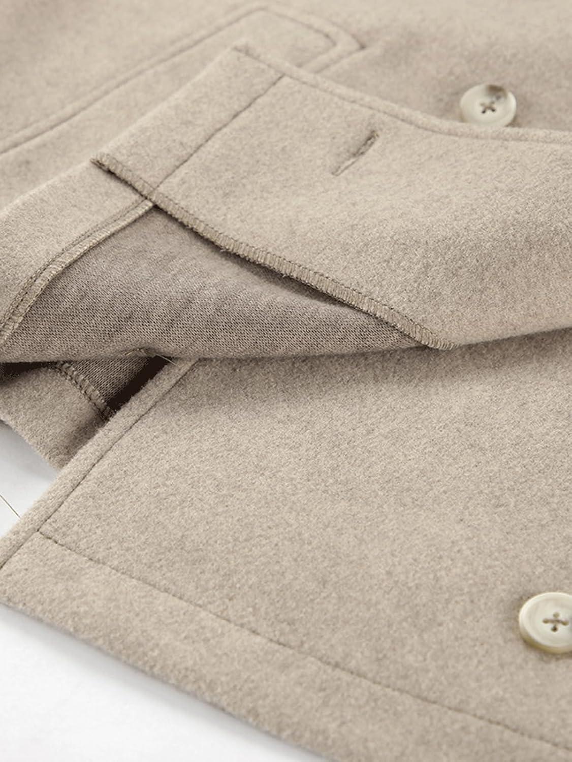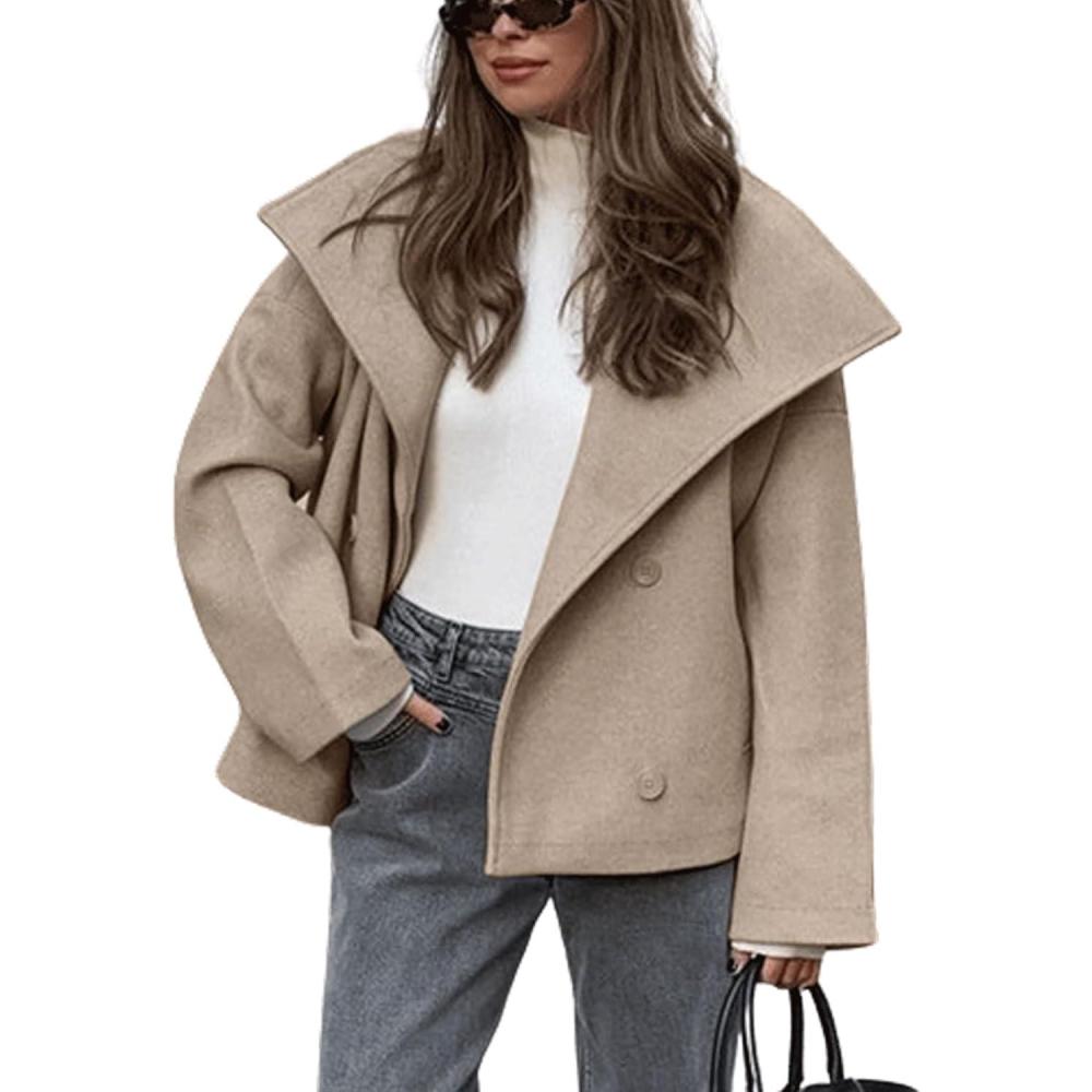 CHARTOU Womens Fall Thicken Tweed Jacket Double Breasted Lapel Collar Overcoat Wool Cropped Coffee Peacoat(Khaki)