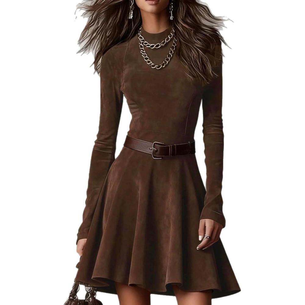Women's Fall Winter Short Dress Long Sleeve Mock Neck Ruffle Slim Fit Belted Faux Suede Dresses Classic brown suede dress with belt/ Retro wine faux leather dress for women 2025/ Stylish leather mini dress Women fall short dress a line dress western style elegant party dress slim fit black faux suede dress A-line flared skirt short ruffle dress slight stretchy leather dress for women slim fit women fall suede dress long sleeve belted crew neck a line dress casual party flared mini dress slim fit brown leather dress with belt winter classic wine suede dress ruffle hem western boho pleated short dress winter outwear dressy coffee boho dress