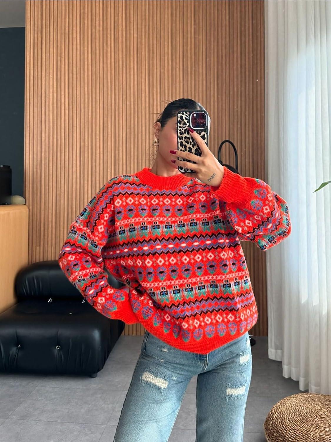 Be the first to review “CHARTOU Women’s Floral Crewneck Knit Sweater Pullover Lantern Long Sleeve Soft Cardigans Fall Loose Outwears(Red)”