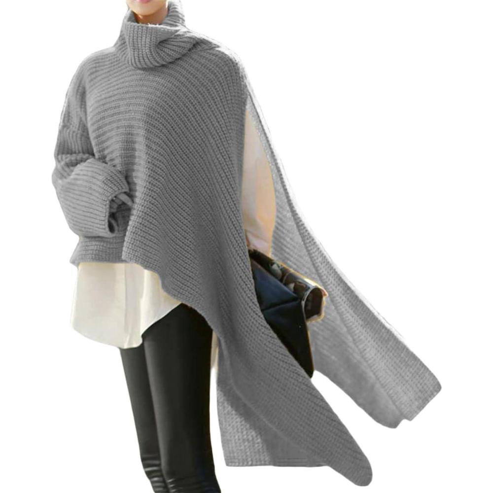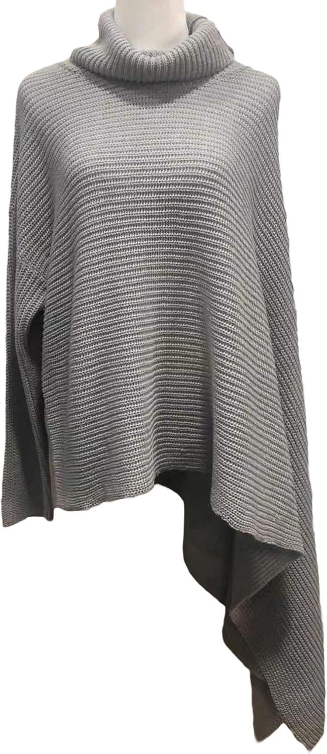 CHARTOU Women’s Flowy Cowl Neck Asymmetric Knitted Cape Shawl Sweater Poncho(Grey)